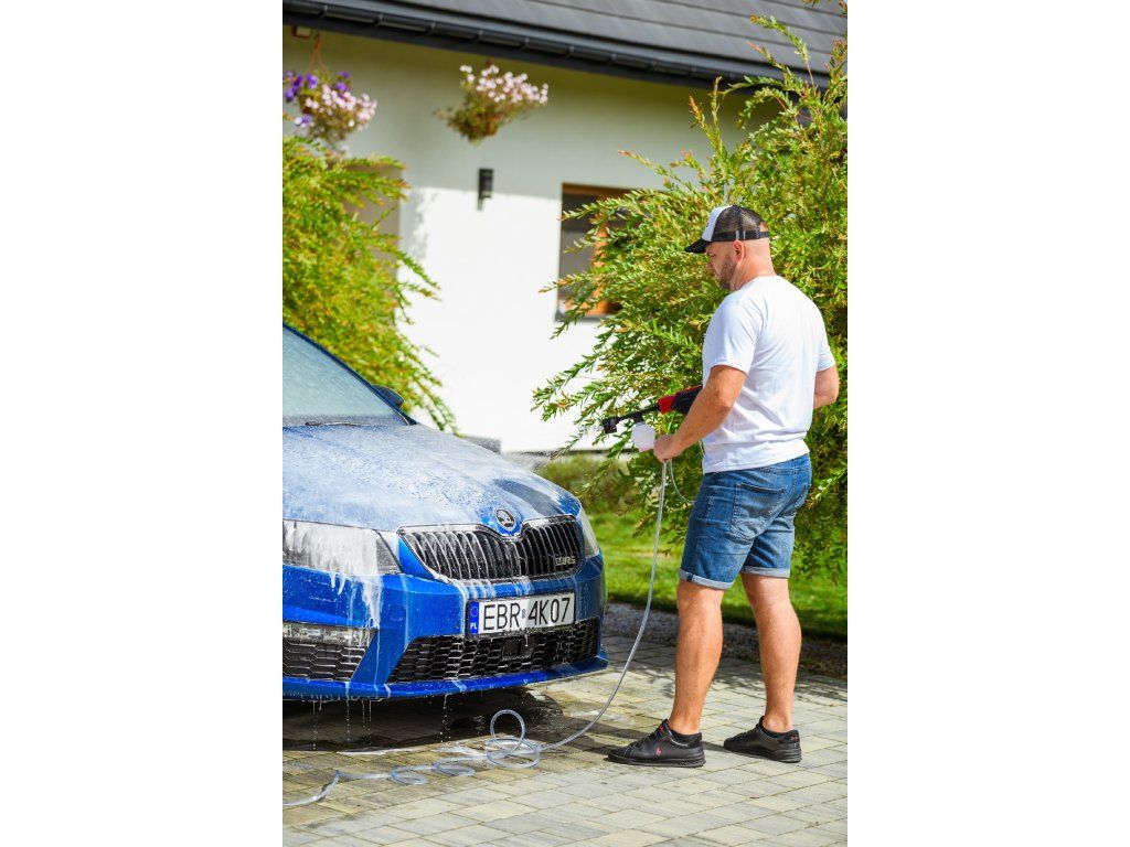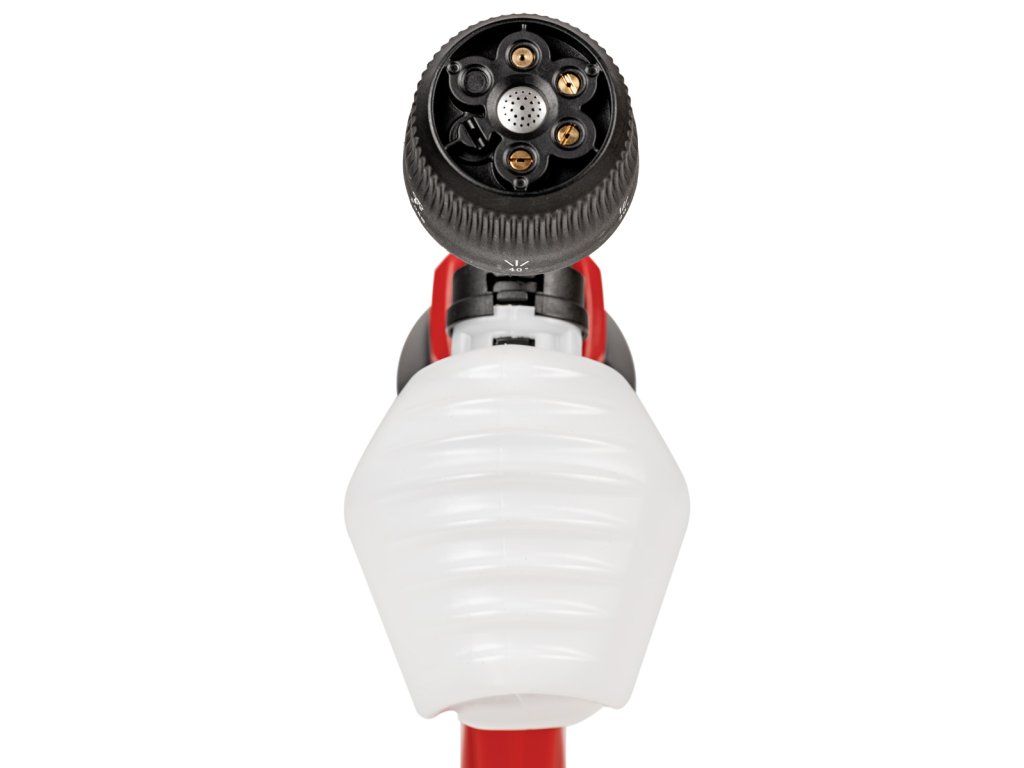 - Zařízení je vybaveno víceúčelovou 6v1 tryskou, která nabízí následující režimy: 0°, 20° (2×), 40°, pěnový režim a režim sprchy. K dispozici je i nádobka na čisticí prostředek, která usnadňuje mytí odolnějších a mastných nečistot. Ergonomická a vyvážená konstrukce, spolu s měkčenou rukojetí, přináší komfort i při delším používání.