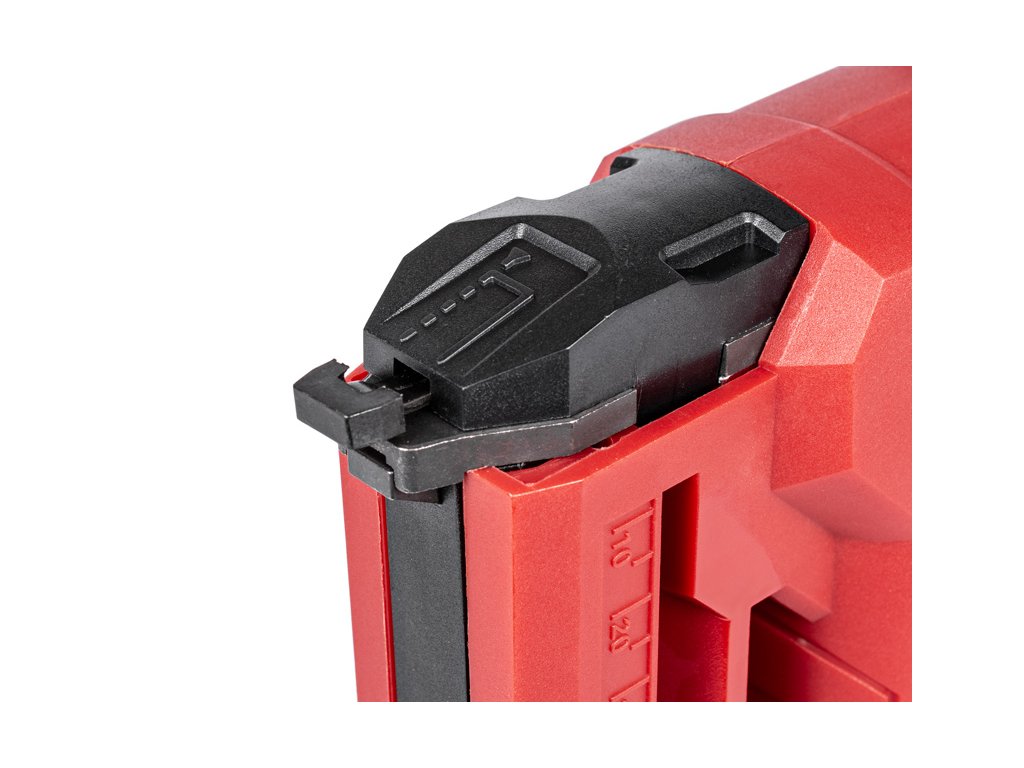 - Vybaven je měkkou rukojetí, LED pracovním světlem a indikátorem naplnění zásobníku. Samozřejmostí je ochrana proti přetížení, přehřátí i vybití baterie, což zajišťuje dlouhou životnost zařízení i bezpečné používání. Rychlou výměnu hřebíků a spon umožňuje přístupný posuvný zásobník.