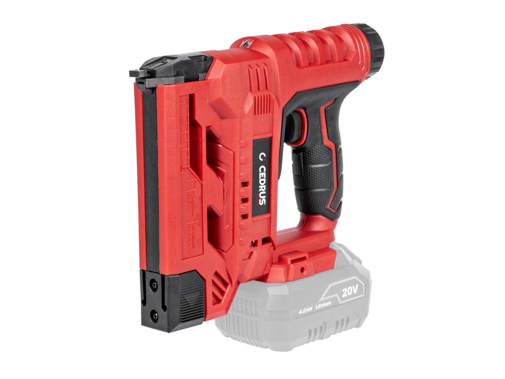 Cedrus CEDNGLI je praktická akumulátorová hřebíkovačka a sponkovačka, navržená pro pohodlné bezdrátové používání bez nutnosti napájení ze sítě. Umožňuje vkládání hřebíků typu T (15–32 mm) a spon typu U (15–25 mm) s kapacitou zásobníku až 50 kusů. Přístroj nabízí 6stupňovou regulaci síly úderu a rychlost až 30 úderů za minutu.