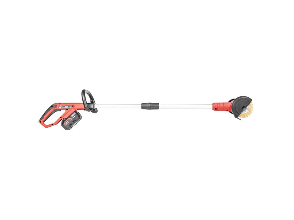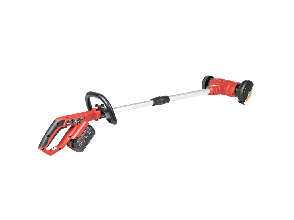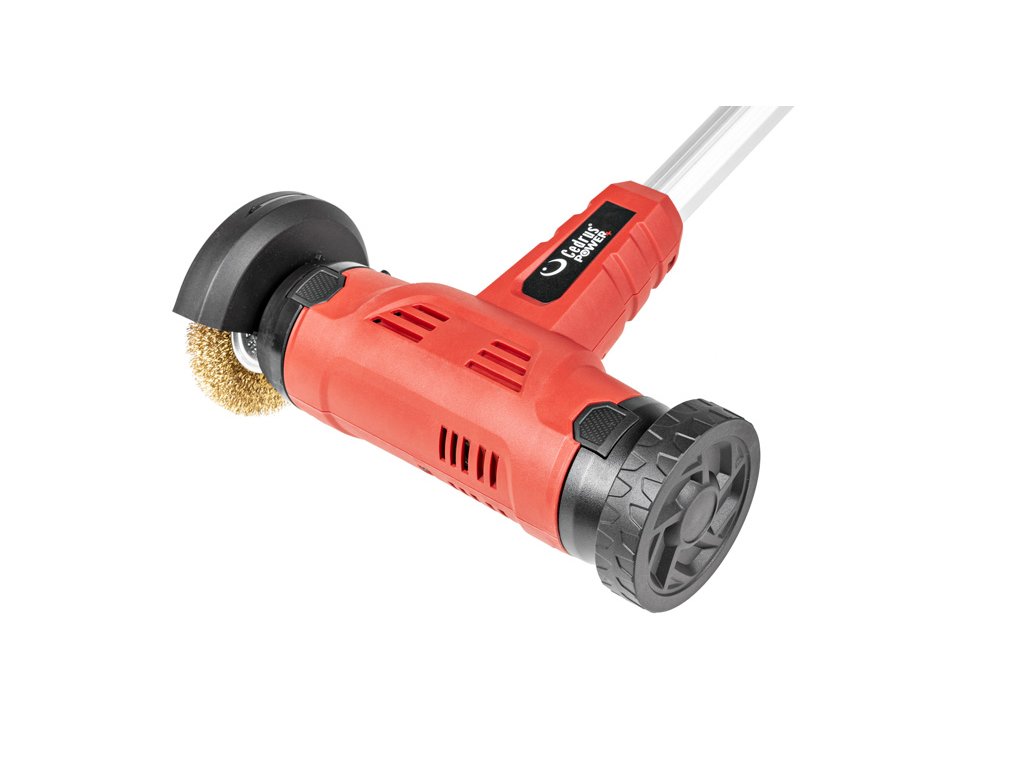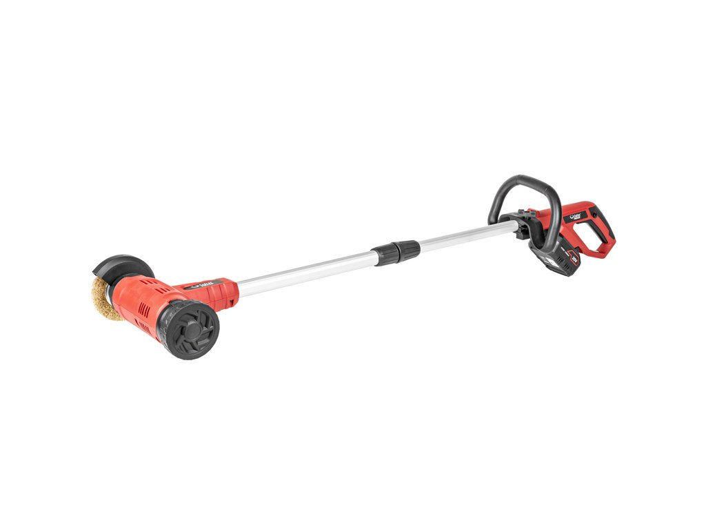 - Nástroj je vybaven výkonným motorem s otáčkami kartáče 1300 ot./min, což zajišťuje efektivní odstraňování mechů, plevele a nečistot. Součástí je i výměnná drátěná a nylonová kartáčová hlava, které se snadno vyměňují podle potřeby povrchu.