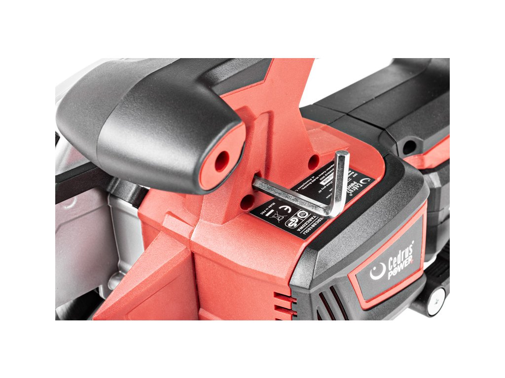 - Laserový ukazatel řezu a LED osvětlení výrazně zlepšují viditelnost linie řezu. Základna z odolné slitiny hliníku poskytuje stabilní podporu. K pile je možné připojit odsávací hadici pro čistší pracovní prostředí. Nástroj je kompatibilní s bateriemi CedLi-Ion 2Ah, 4Ah, 6Ah a nabíječkami CEDFCH2.4, CEDDCH3.0, CEDFCH3.5.