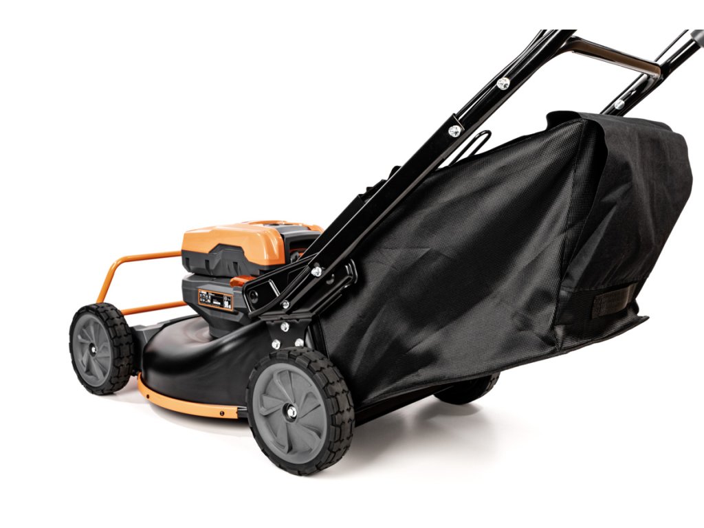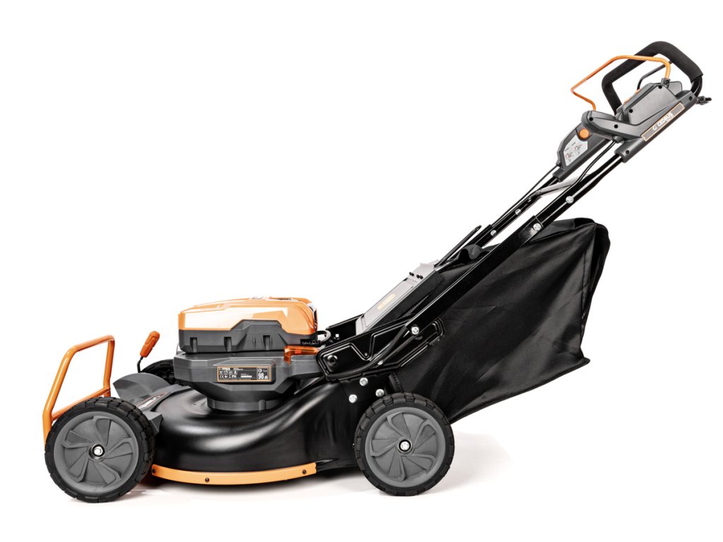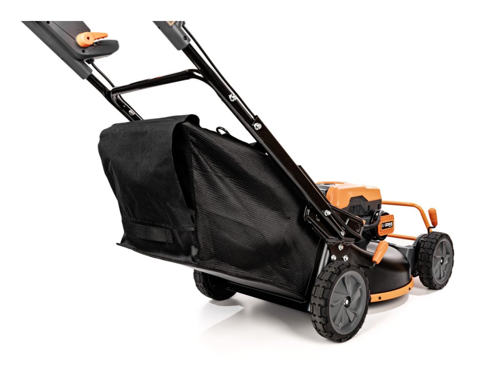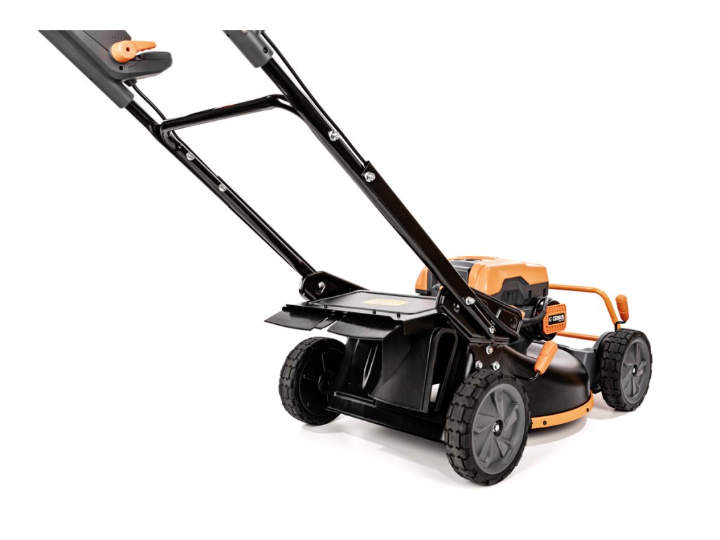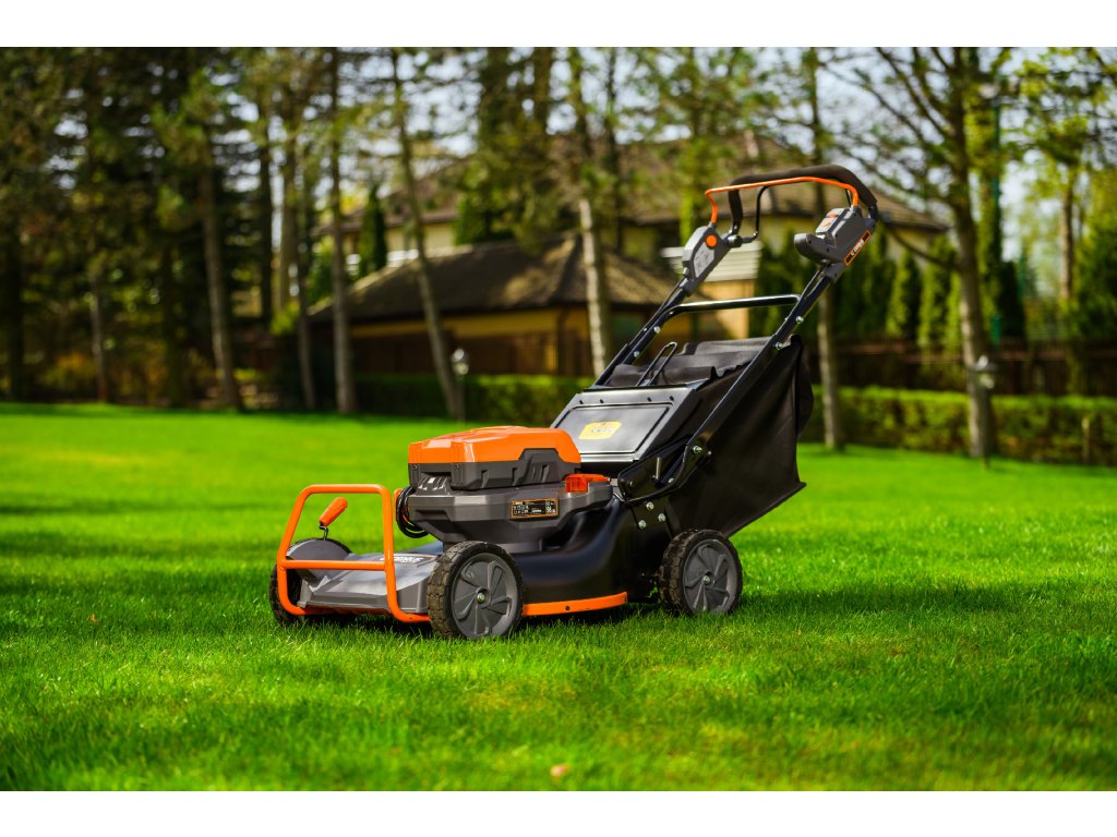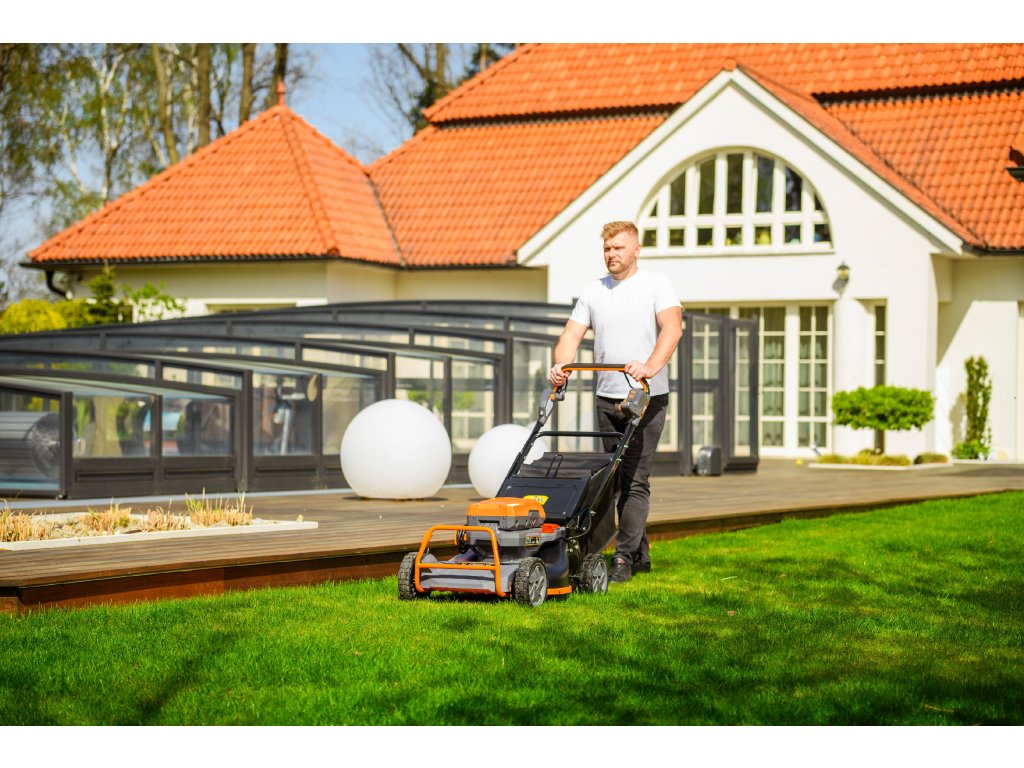- Přes svou robustní konstrukci váží pouze 47,5 kg, což spolu s integrovaným pojezdem zajišťuje pohodlnou manipulaci i při delším sečení.