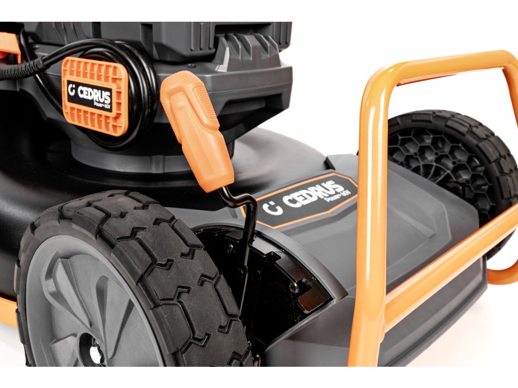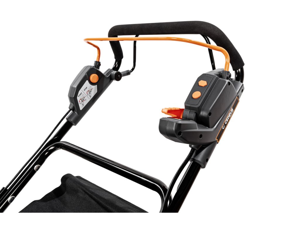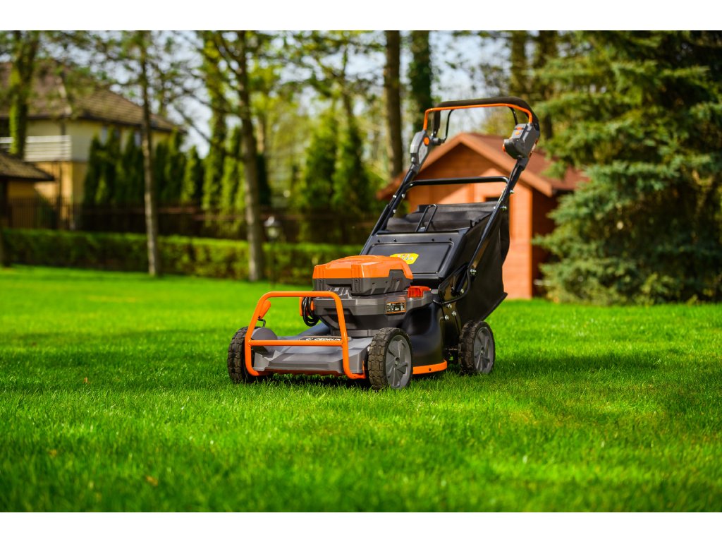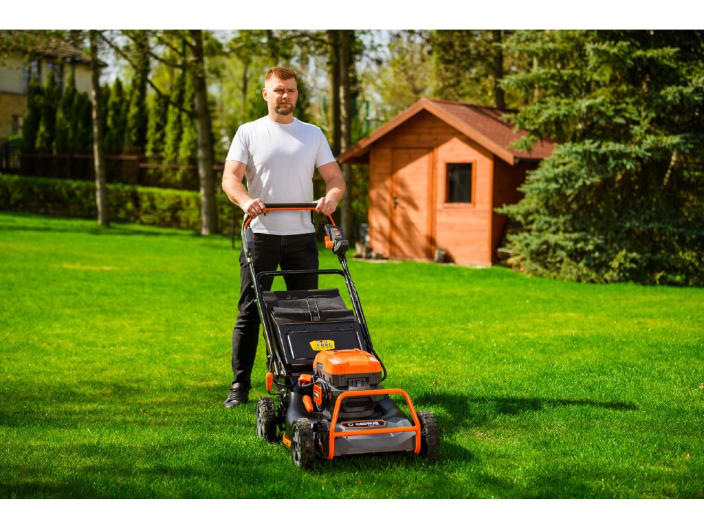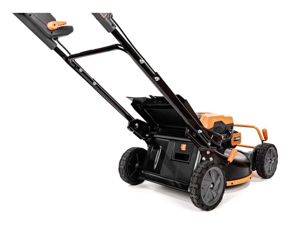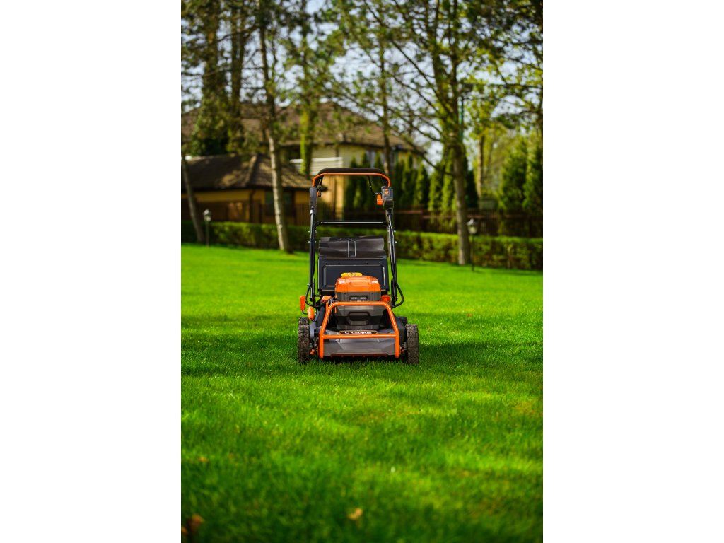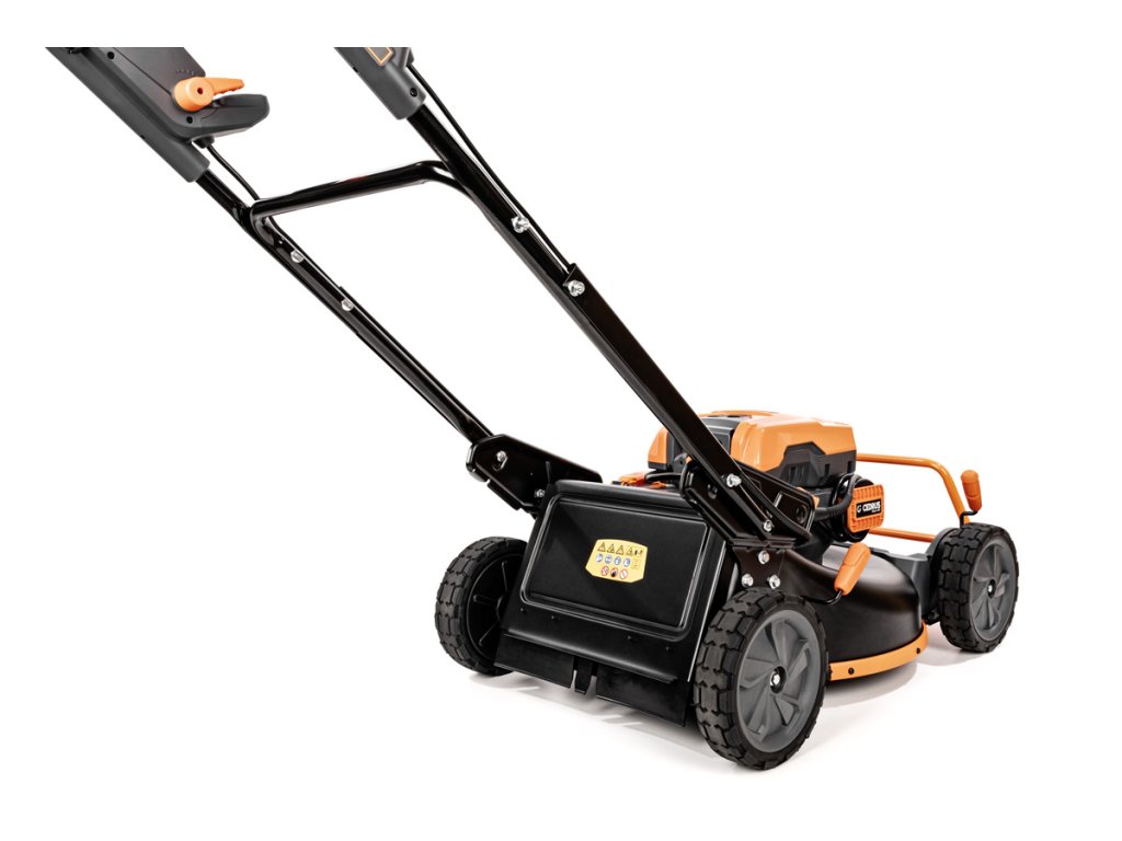 - Přes svou robustní konstrukci váží pouze 47,5 kg, což spolu s integrovaným pojezdem zajišťuje pohodlnou manipulaci i při delším sečení.