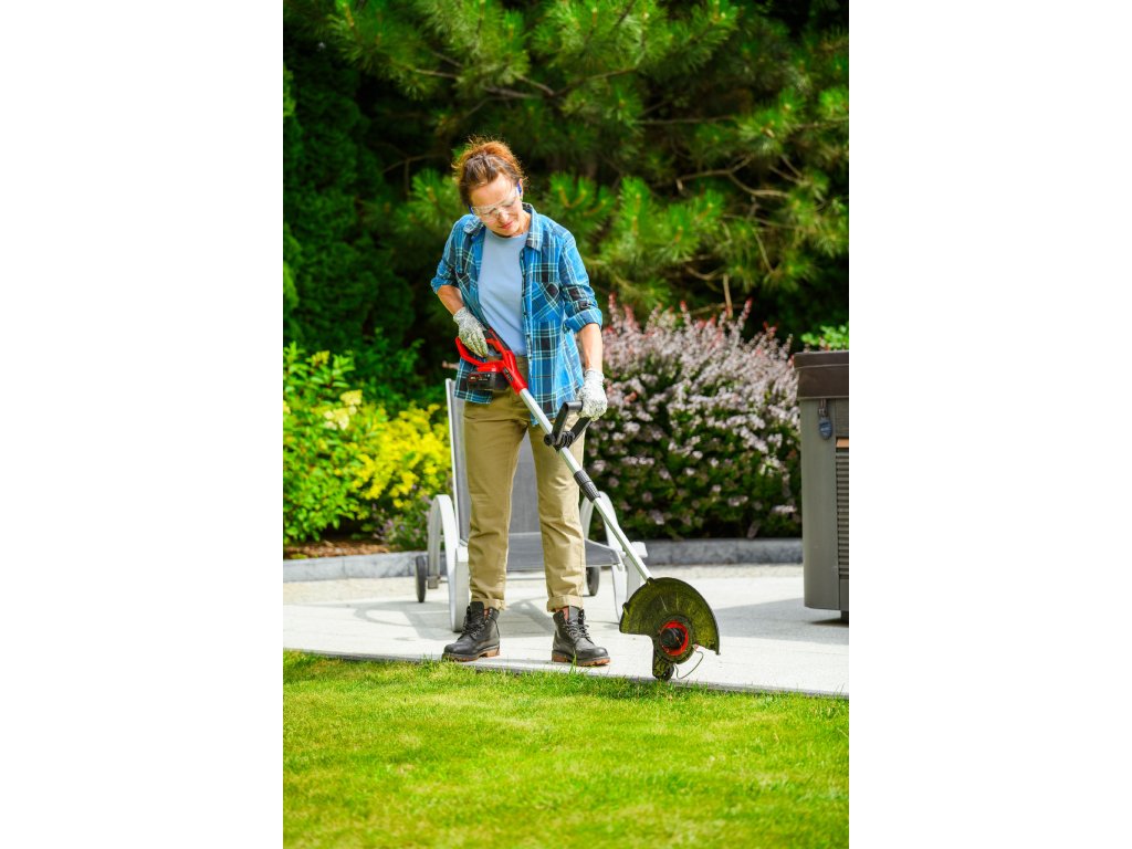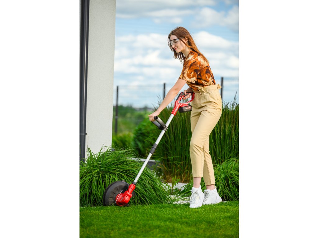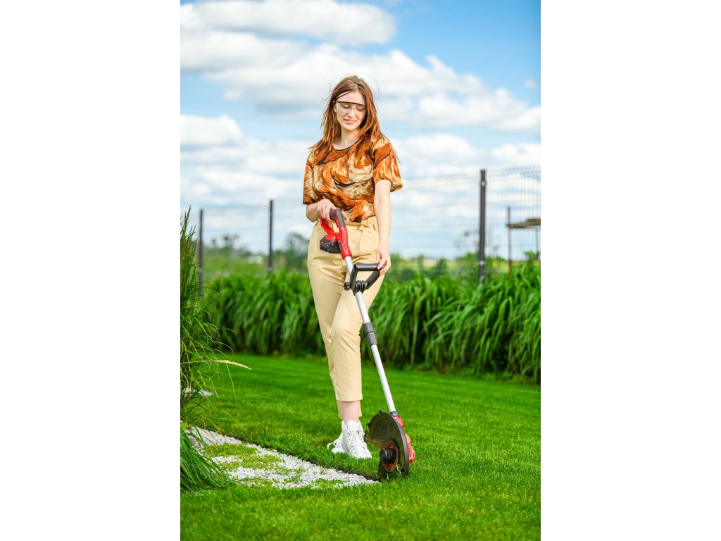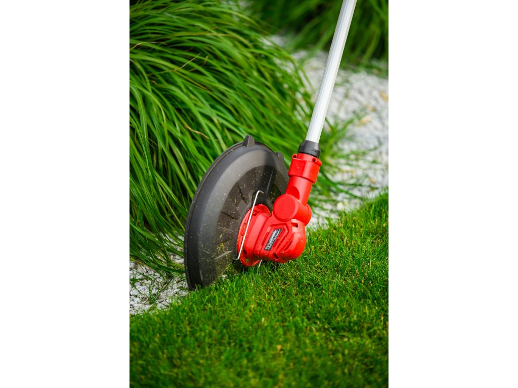 - Je vybavena automatickou strunovou hlavicí s průměrem 1,6 mm, která se sama přizpůsobuje při sečení. Regulovatelná hlava se sklonem 90° umožňuje přesné zastřihávání i na hůře dostupných místech. Délka rukojeti je nastavitelná v rozsahu 1,0 - 1,36 m, což přináší pohodlí při práci.
