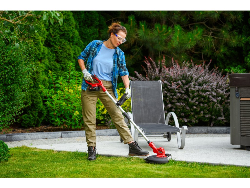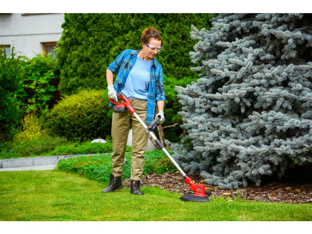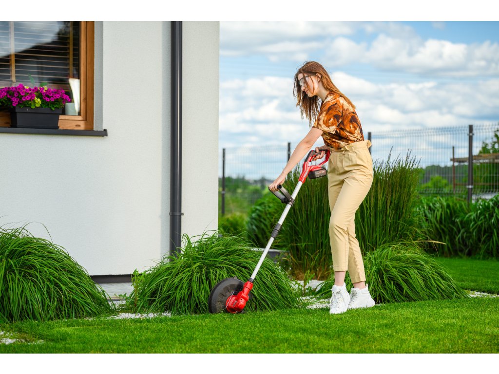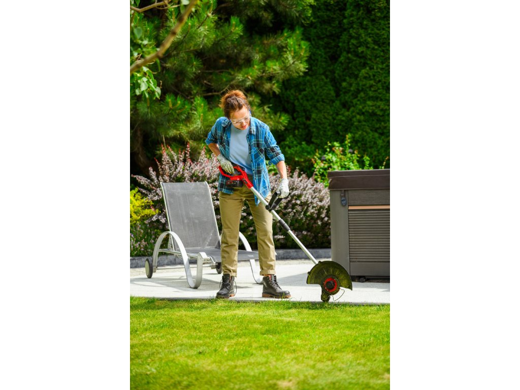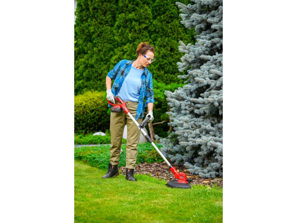 - Je vybavena automatickou strunovou hlavicí s průměrem 1,6 mm, která se sama přizpůsobuje při sečení. Regulovatelná hlava se sklonem 90° umožňuje přesné zastřihávání i na hůře dostupných místech. Délka rukojeti je nastavitelná v rozsahu 1,0 - 1,36 m, což přináší pohodlí při práci.