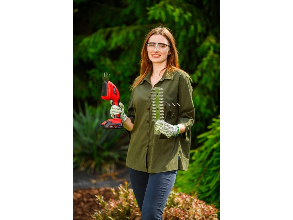 Akumulátorové nůžky Cedrus CEDGS100LI jsou ideálním pomocníkem pro úpravu trávníků, živých plotů a kypření půdy. Díky 3v1 funkcionalitě umožňují rychlou změnu mezi nůžkami na trávu, plotostřihem a kypřicími pazourky. Kompaktní a lehká konstrukce spolu s ergonomickým měkkým úchopem zajišťuje pohodlnou manipulaci i při delší práci. Přístroj je napájen max 20V Li-Ion baterií a je kompatibilní s akumulátory CEDLi-Ion 2Ah, 4Ah a 6Ah. Nůžky neobsahují baterii ani nabíječku, což umožňuje využití kompatibilních akumulátorů z jiných zařízení Cedrus.