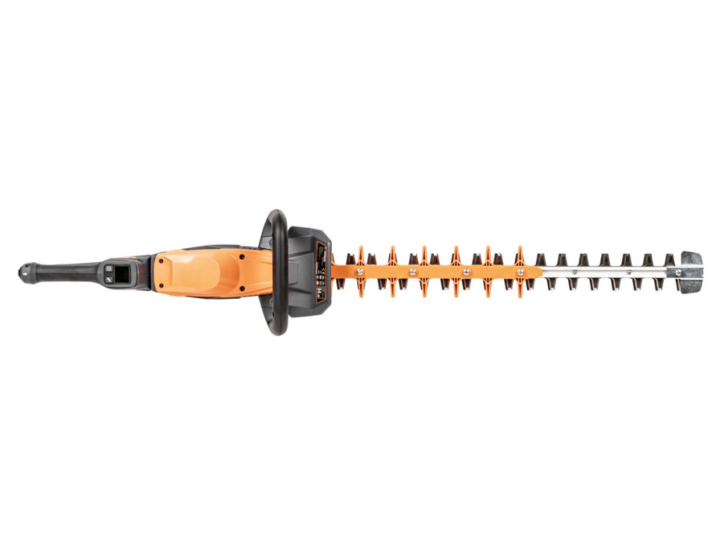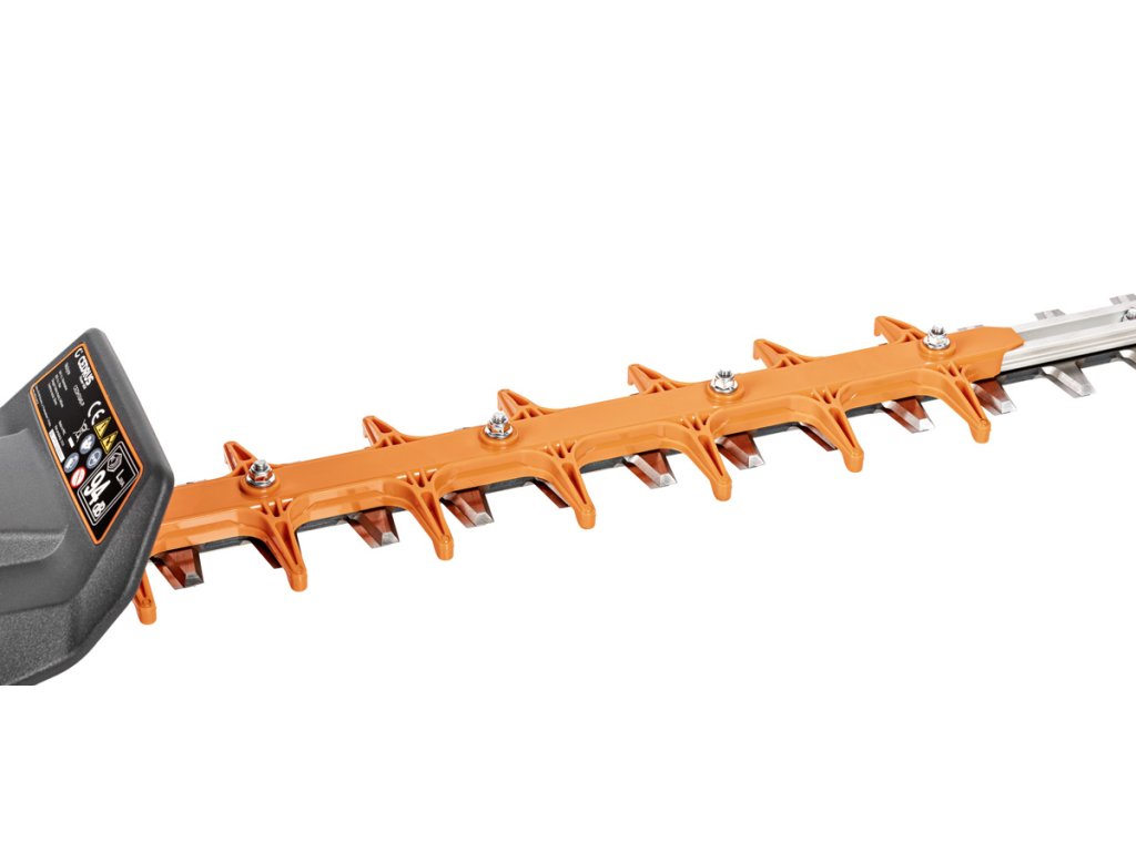 - Ostrý laserově řezaný dvousečný nůž o délce 640 mm umožňuje efektivní stříhání živých plotů, keřů i silnějších větví až do 30 mm. Díky otočné rukojeti (180° ve 5 polohách) je práce komfortní i v méně přístupných místech.