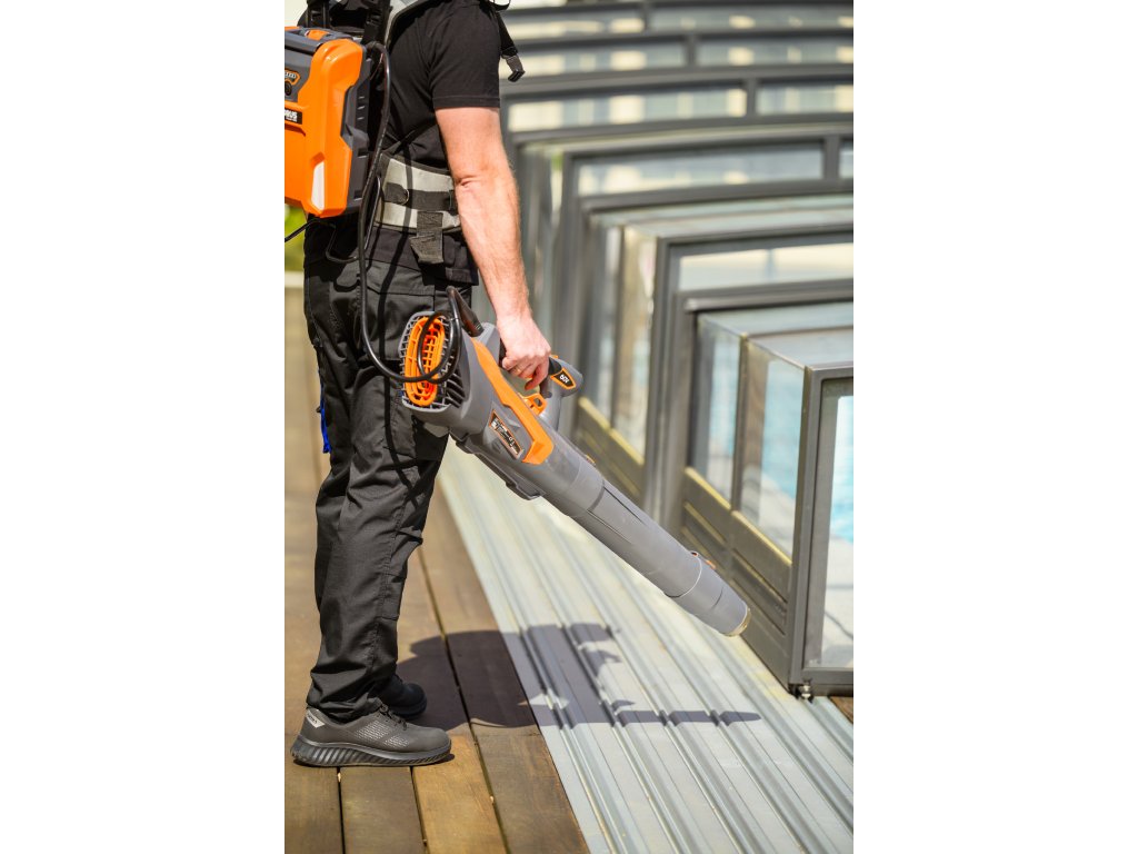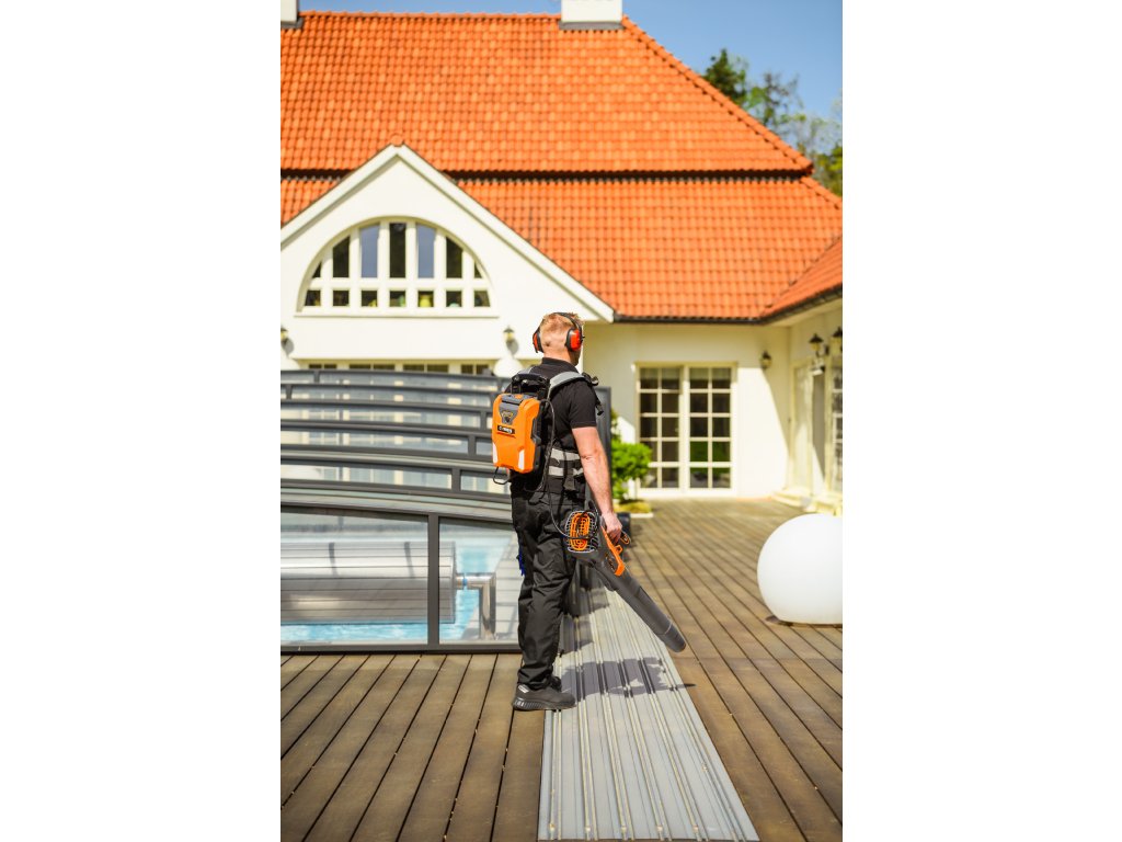 - S maximální rychlostí proudění vzduchu 95 m/s (305 km/h) a průtokem 1410 m³/h snadno odstraní i větší listí, větvičky nebo prach. Ergonomická konstrukce s nízkou hmotností 2,53 kg zaručuje pohodlnou práci i při delším používání. Díky krytí IPX4 odolá i vlhkému prostředí.