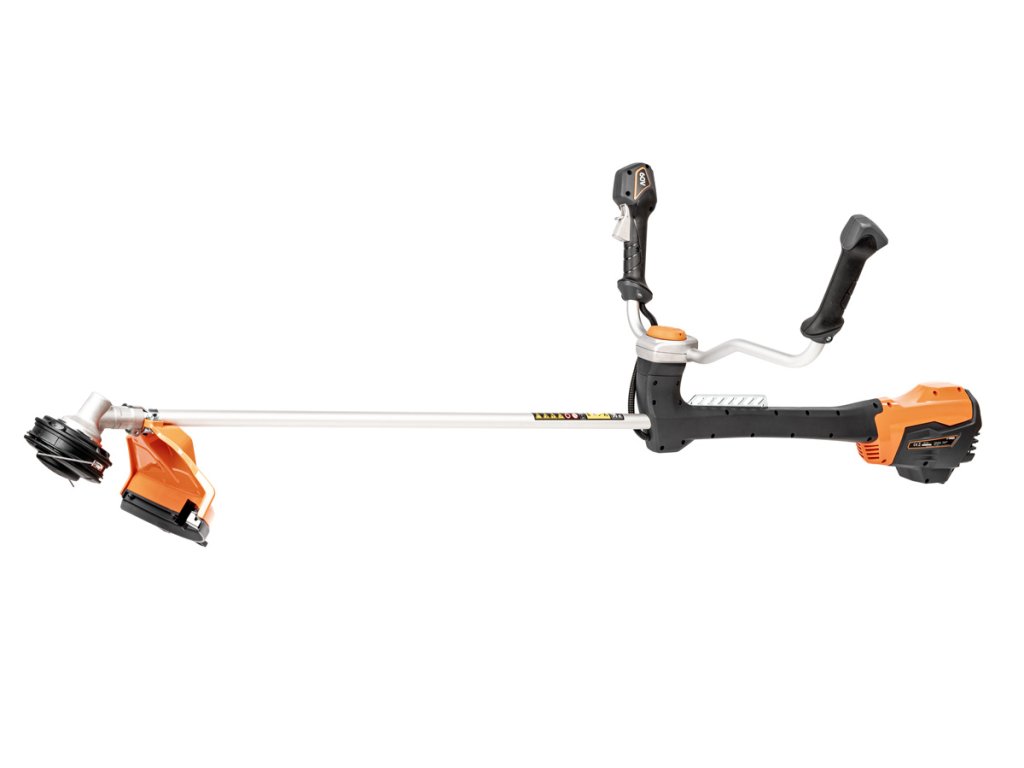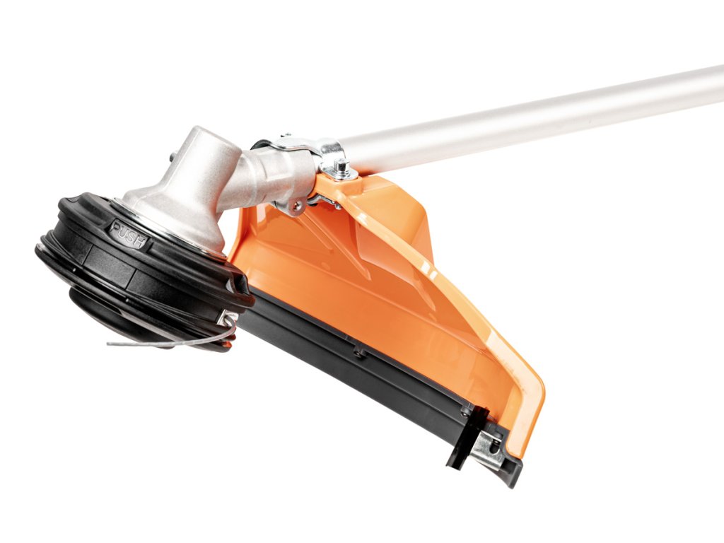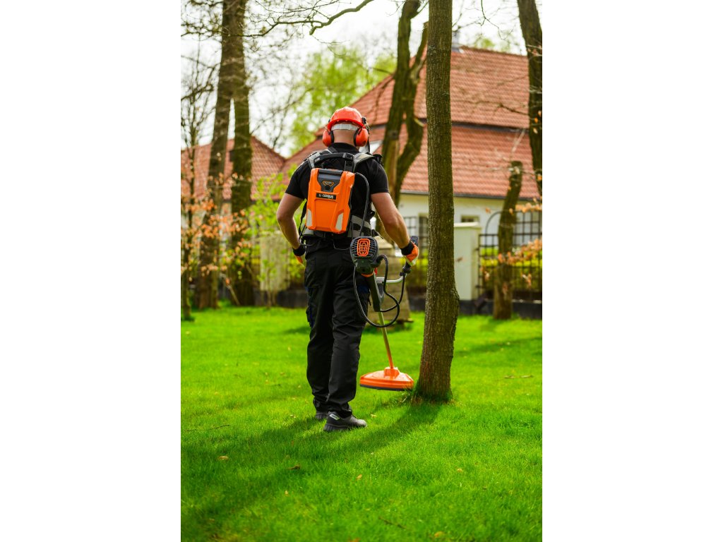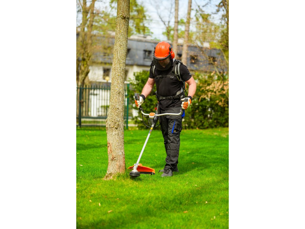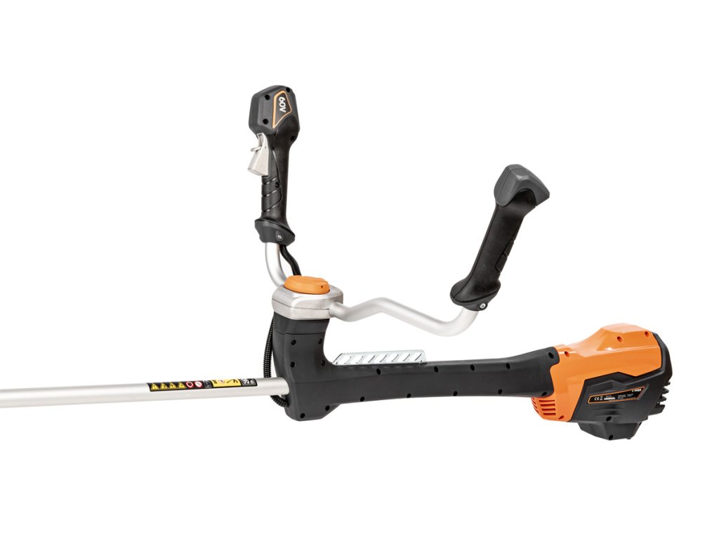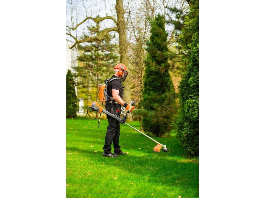 - Rychlost otáček je možné přizpůsobit dle potřeby (4500 / 5200 / 5800 ot/min), a křovinořez lze používat jak s hlavou pro strunovou seč o šířce 420 mm, tak s kovovým kotoučem o průměru 258 mm. Díky ergonomickému obouručnímu madlu a nízké hladině hluku je práce pohodlná a efektivní. Vysoce čitelný displej usnadňuje kontrolu stavu zařízení.