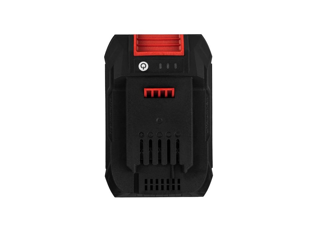 Součástí je také LED indikátor stavu nabití, který zobrazuje aktuální úroveň kapacity. Baterie je kompaktní, lehká a ideální jako základní nebo náhradní akumulátor pro každodenní použití v dílně i na stavbě.