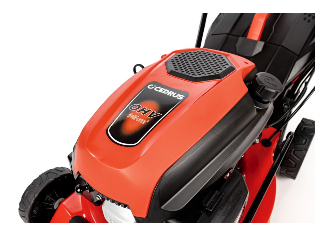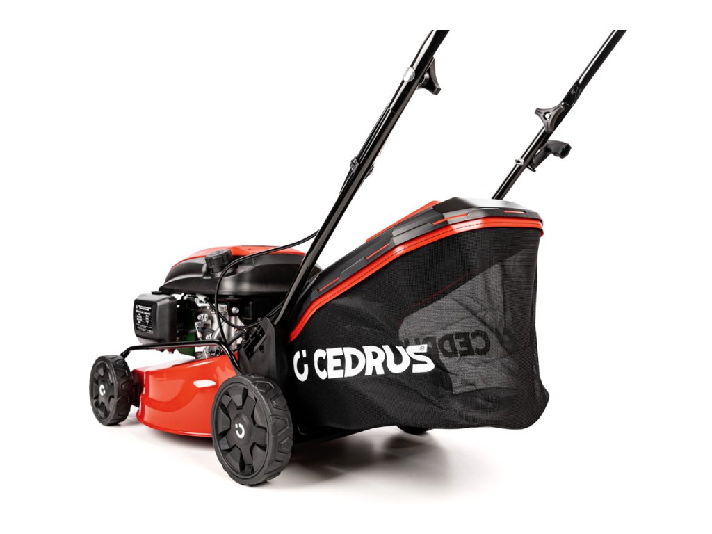 - Cedrus CEDKS42S je vybaven centrální regulací výšky sečení, která umožňuje nastavení výšky sečení v rozsahu 25-75 mm (6 pozic). Pohonný mechanismus je přenášen přes pás, což zajišťuje stabilní a plynulý chod. Velká kola (přední 6" a zadní 7") usnadňují manipulaci se sekačkou a umožňují její pohyb i na nerovném terénu. Tento model je ideální pro zahrady do 1000 m².