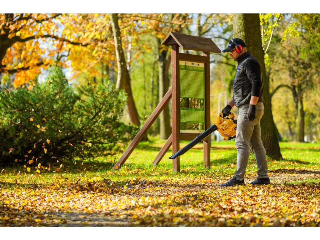 - Systém rychlé změny režimu umožňuje snadné přepnutí mezi foukáním a vysáváním bez nutnosti složité demontáže. Velká kapacita vzduchu 7,8 m³/min zajišťuje efektivní čištění i větších ploch.