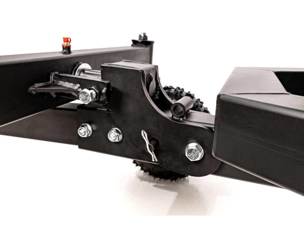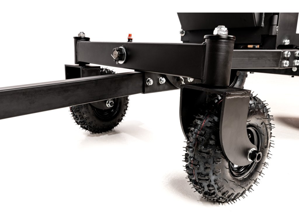 - Díky konstrukci na kolech a závěsu pro připojení k vozidlu je stroj snadno přemístitelný. Tento model je ideální volbou pro profesionální využití v lesnictví, zemědělství nebo komunálních službách.
