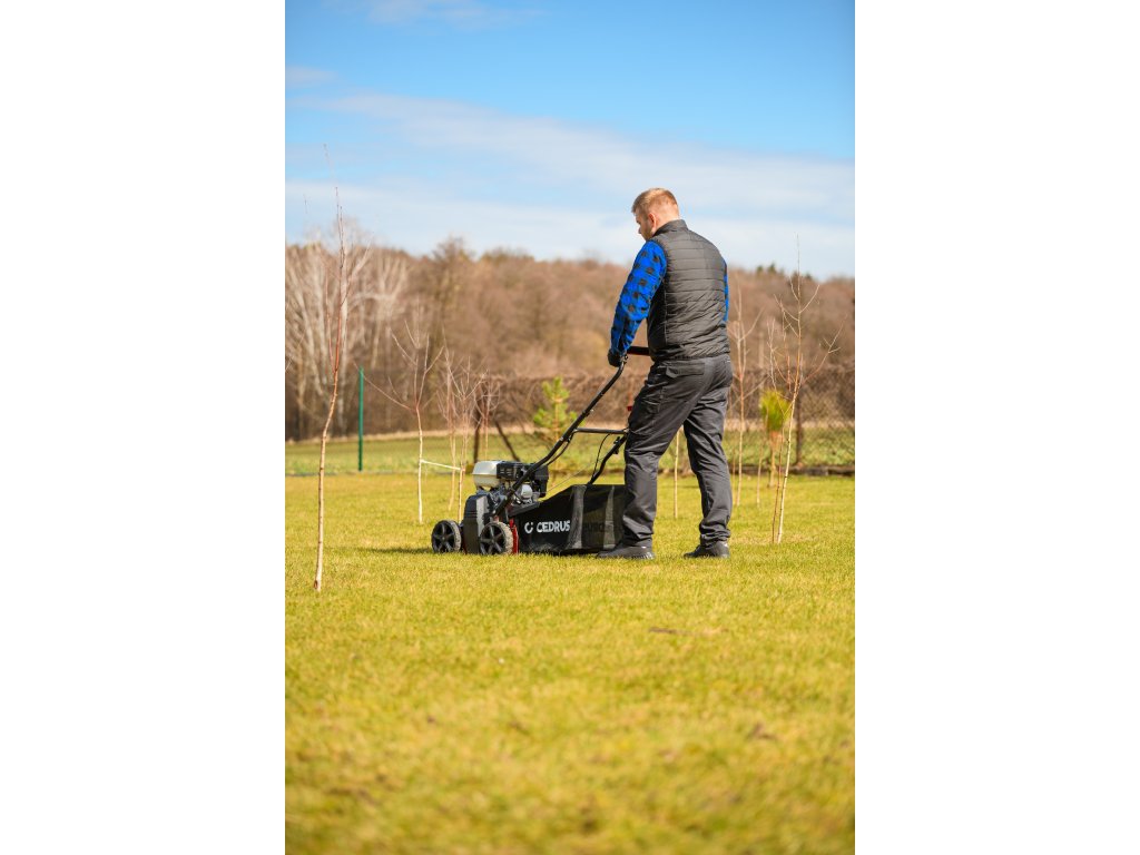 Benzínový vertikutátor Cedrus CEDWR01-H je spolehlivé zařízení určené pro efektivní provzdušnění trávníku. Díky výkonnému motoru Honda GP200 s výkonem 4,8 kW zvládne i náročnější úkoly. Pracovní válec se 18 pevnými noži odstraňuje mech, plsť a zbytky trávy, což zlepšuje přístup vody, živin a vzduchu ke kořenům trávy.