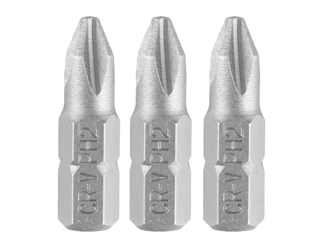 Sada bitů GRAPHITE 56T542 obsahuje 3 kusy bitů PH2 x 25 mm, vyrobených z odolné chrom-vanadové oceli CrV, která zaručuje pevnost, odolnost a dlouhou životnost. Standardní stopka ¼" (6,35 mm) umožňuje snadné použití s běžnými vrtačkami a akumulátorovými šroubováky.