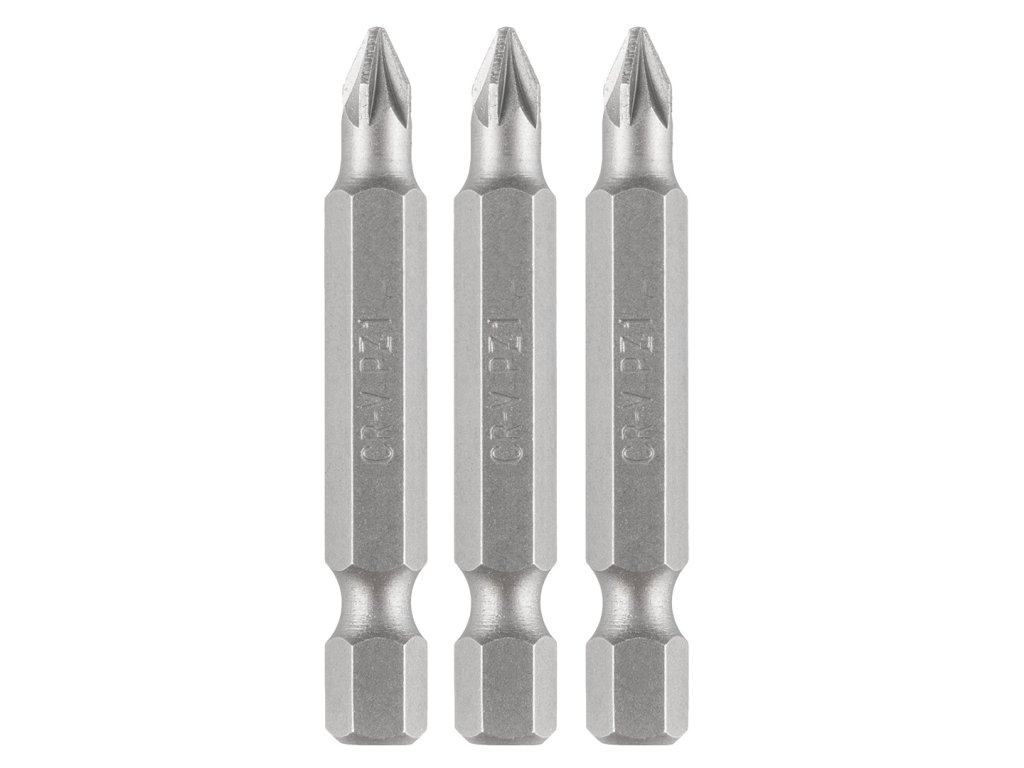 Sada bitů GRAPHITE 56T534 obsahuje 3 kusy bitů PZ1 x 50 mm, vyrobených z houževnaté chrom-vanadové oceli CrV, která zaručuje vysokou odolnost proti opotřebení a dlouhou životnost. Díky standardní stopce ¼" (6,35 mm) jsou bity plně kompatibilní s běžnými vrtačkami a akumulátorovými šroubováky.