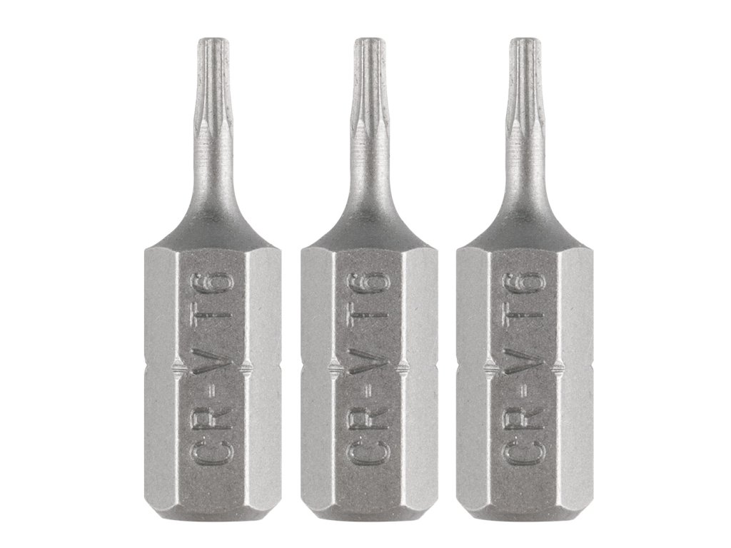 Sada bitů GRAPHITE 56T527 obsahuje 3 kusy bitů Torx T6 x 25 mm, vyrobených z houževnaté chrom-vanadové oceli CrV, která zajišťuje vysokou odolnost proti opotřebení a dlouhou životnost. Standardní stopka ¼" (6,35 mm) umožňuje použití s běžnými vrtačkami a akumulátorovými šroubováky.