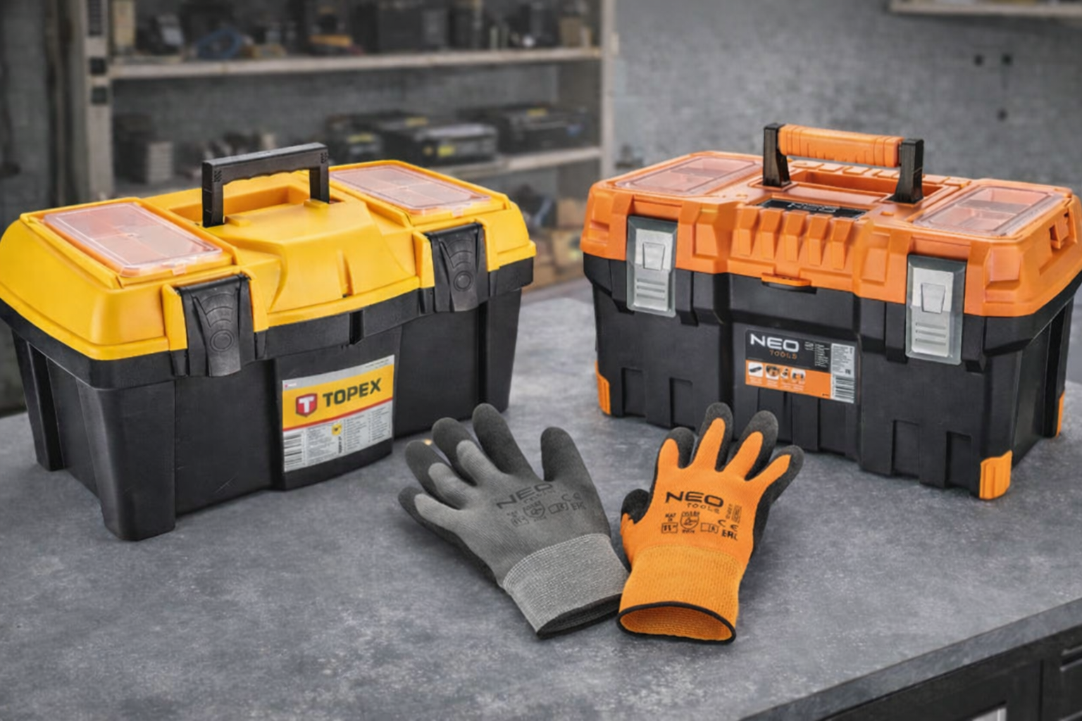 - plastové boxy a kufry na nářadí