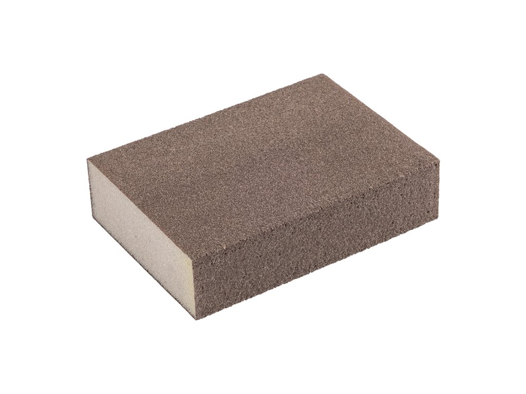 Brusivo z elektrokorundu je naneseno na všech čtyřech stranách houby, což prodlužuje životnost a zajišťuje efektivní práci i na těžko přístupných místech. Houba je ideální pro dřevo, kovy, plasty, tmely, omítky, barvy i sádrokarton.