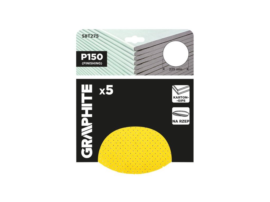 Brusné kotouče GRAPHITE P150 (225 mm) jsou ideální volbou pro přípravu povrchů při dokončovacích pracích, a to jak v domácí, tak i v profesionální praxi.