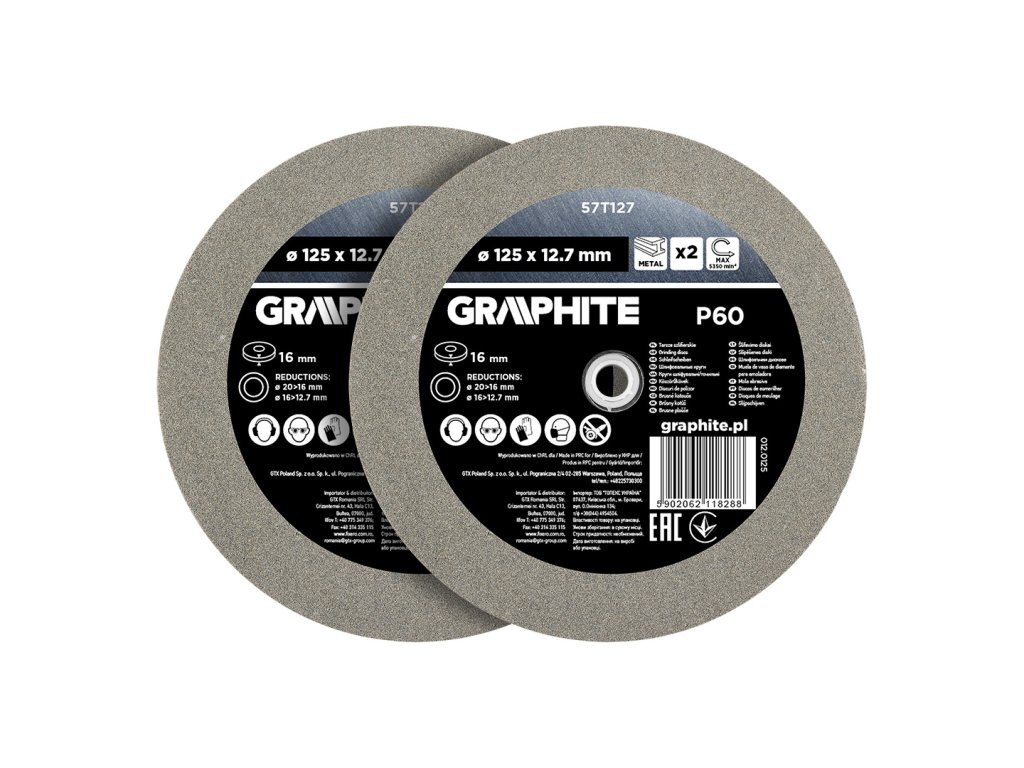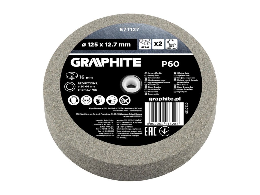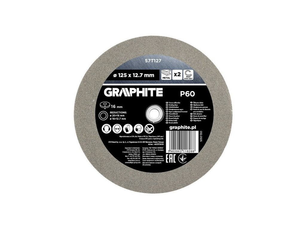 Brusné kotouče GRAPHITE o průměru 125 mm a zrnitosti P60 jsou ideálním příslušenstvím pro stolní brusky používané při opracování kovových materiálů. Vhodné pro broušení kovových dílů, ostření řezných nástrojů (např. nože, dláta) i pro zarovnávání a povrchovou úpravu kovových ploch.