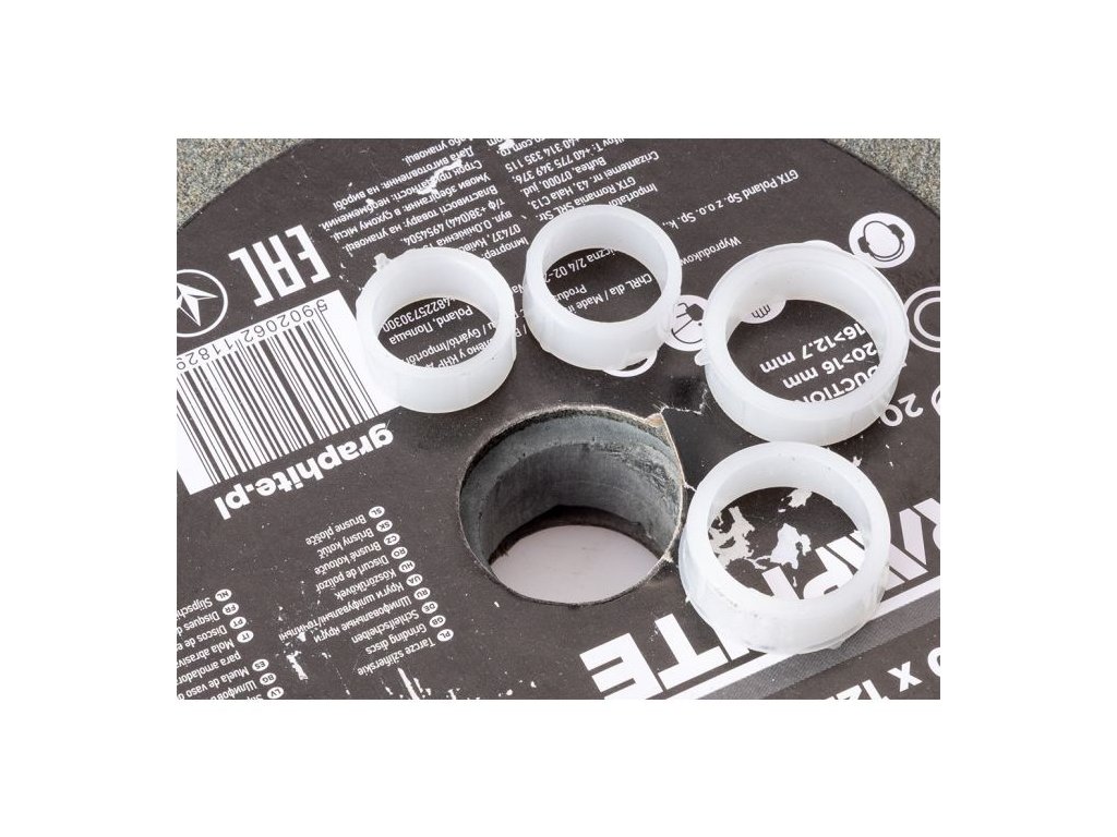 Díky těmto adaptérům lze kotouče snadno nasadit na různé typy stolních brusek s různými průměry hřídele. Maximální doporučená rychlost otáček je 5350 otáček za minutu, což zajišťuje dostatečný výkon při zachování bezpečnosti.