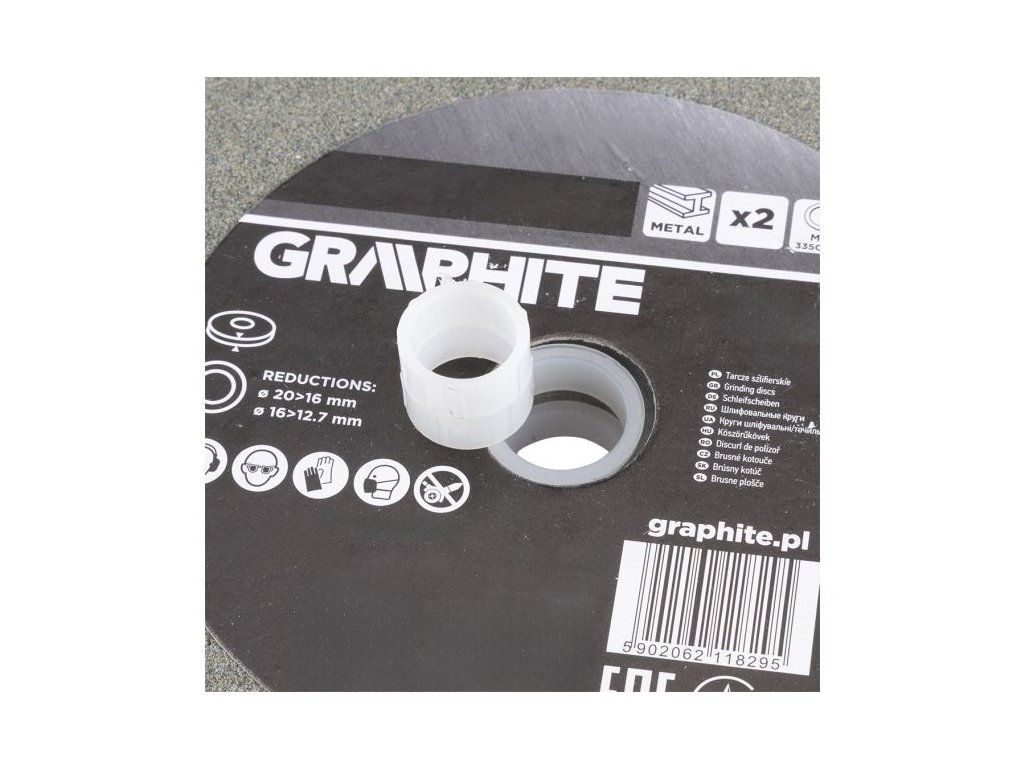 Brusné kotouče GRAPHITE 200 mm P60, 2 ks, s redukcemi 20–16 a 16–12,7 mm, 57T128