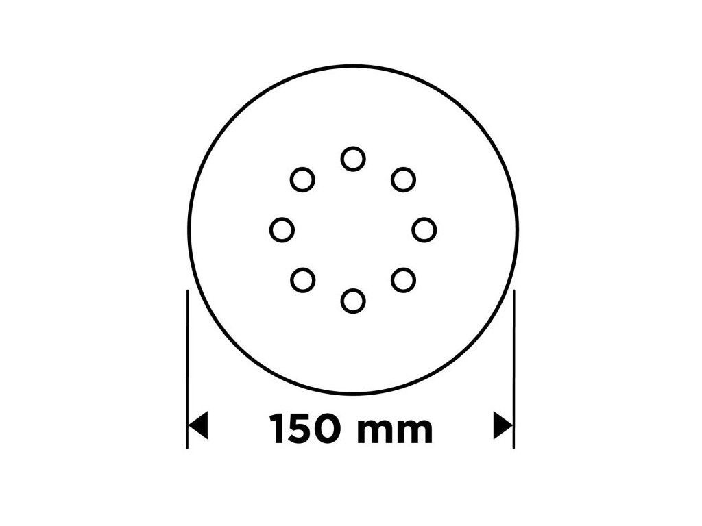 Brusný povrch tvoří elektrokorundový povlak, který zaručuje efektivní a rovnoměrný úběr materiálu. Podklad je vyroben z kvalitního papíru. Kotouče jsou kompatibilní s orbitálními a excentrickými bruskami o průměru 150 mm a hodí se pro broušení dřeva, kovu i plastu.