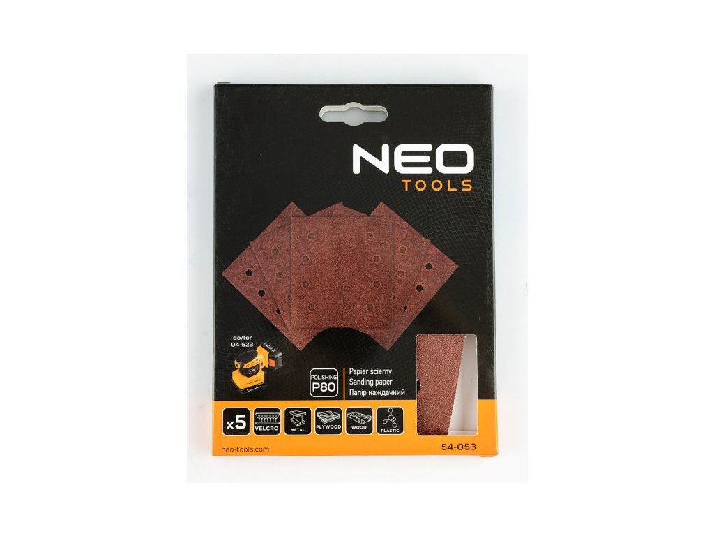 Brusné papíry NEO TOOLS 113 × 113 mm, P80 (5 ks) jsou spolehlivým pomocníkem pro každodenní broušení, vhodné jak pro kutily, tak pro profesionály.