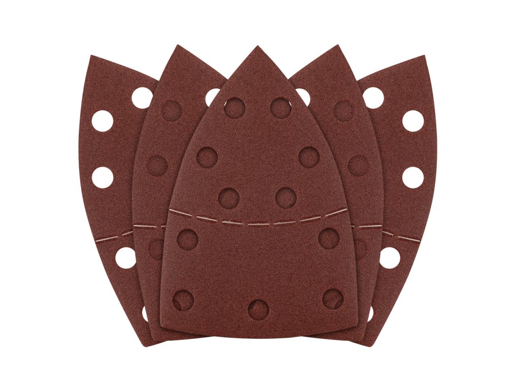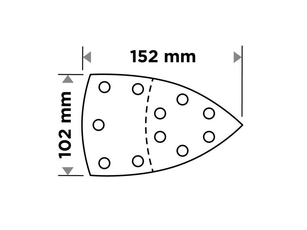 Sada brusných papírů GRAPHITE 58T305 obsahuje 5 kusů brusných listů o rozměrech 102 × 152 mm se zrnitostí P150. Díky tvaru tzv. „žehličky“ lze odtrhnout špičkovou část a nasadit ji na brusku s delta patkou, což zvyšuje univerzálnost použití.