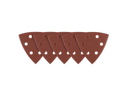 Brusné papíry GRAPHITE 58T332 delta 93 × 93 mm, P240, se suchým zipem a 6 otvory. Sada 5 kusů pro jemné broušení kovu, dřeva a plastů.