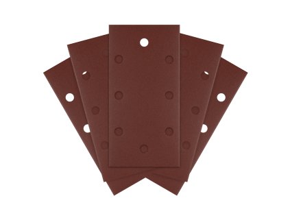 Brusné papíry GRAPHITE 58T248, rozměr 93 × 185 mm, zrnitost P240, s 8 otvory pro odsávání prachu. Balení obsahuje 5 kusů.