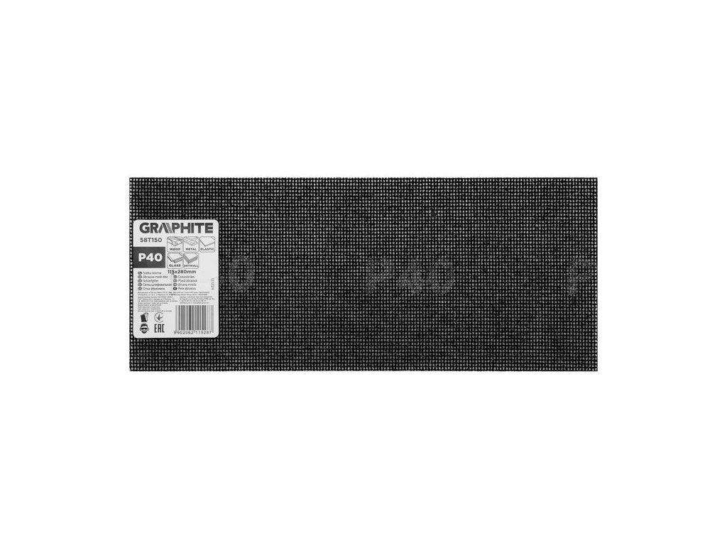 Brusná mřížka GRAPHITE 58T150 o rozměrech 115 × 280 mm se zrnitostí P40 je určena pro hrubé ruční broušení a tvarování povrchů z dřeva, kovu, plastu, skla a sádrokartonu.