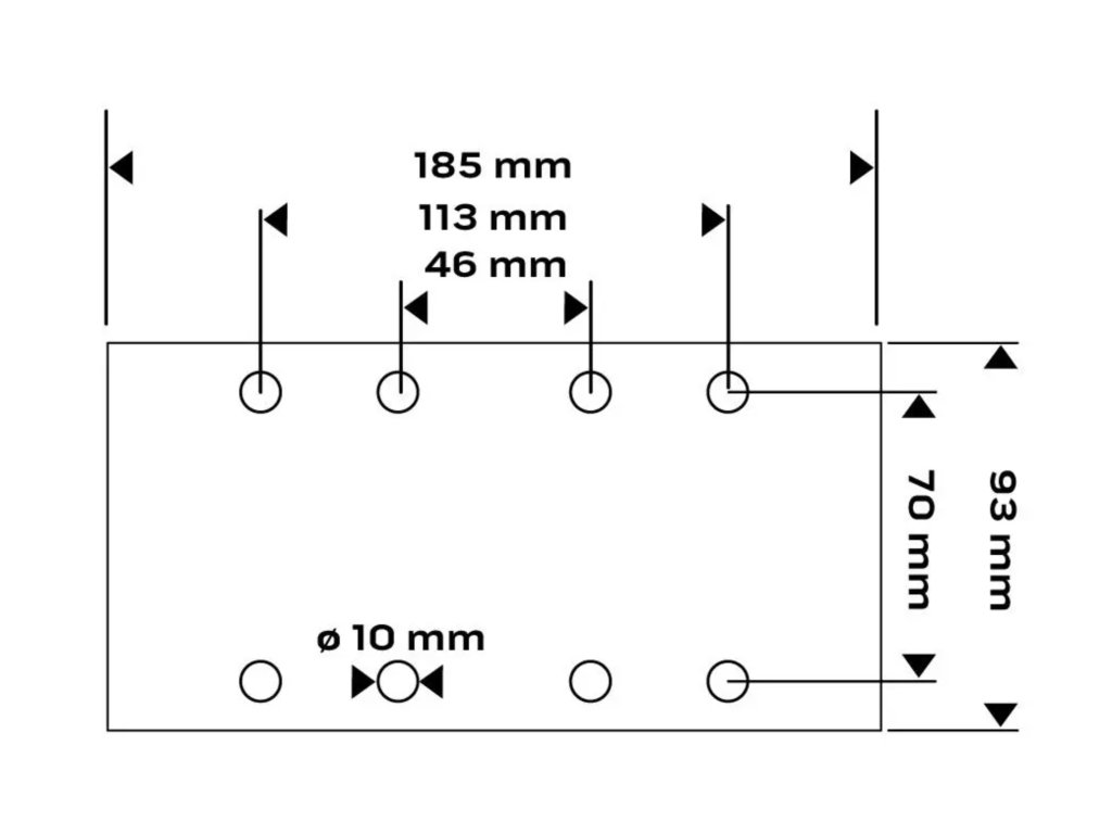 Vysoce kvalitní brusný papír NEO TOOLS 55-741 s uchycením na suchý zip je navržen pro použití s orbitálními bruskami. Obdélníkový formát 93 × 185 mm umožňuje stabilní přítlak a rovnoměrné broušení větších ploch, což je ideální při renovačních, dokončovacích i dílenských pracích.
