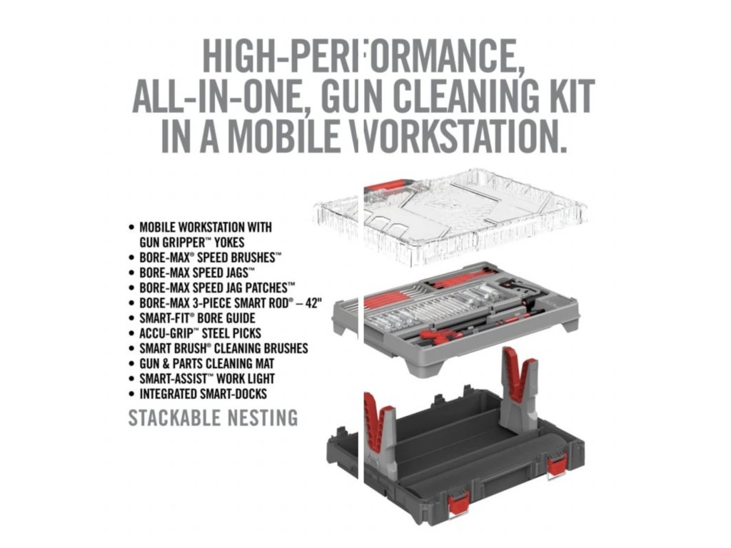 Bore-Max Master Cleaning Kit and Mobile Workstation od americké značky Real Avid představuje profesionální, univerzální a mimořádně dobře organizovanou sadu pro čištění zbraní. Vše je uloženo v odolném kufru, který slouží zároveň jako mobilní pracovní stanice, takže můžete zbraň čistit kdekoli – doma, na střelnici i v terénu.