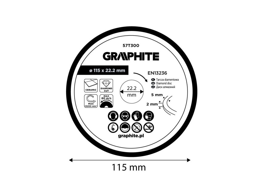 Diamantový řezný kotouč, 115 x 22,2 mm, mokrý
