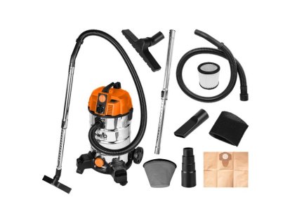 Průmyslový vysavač 1400 W, 30 L 04-738 značky NEO TOOLS je víceúčelový vysavač uzpůsobený mimo jiné pro práci s bruskou na omítku.
