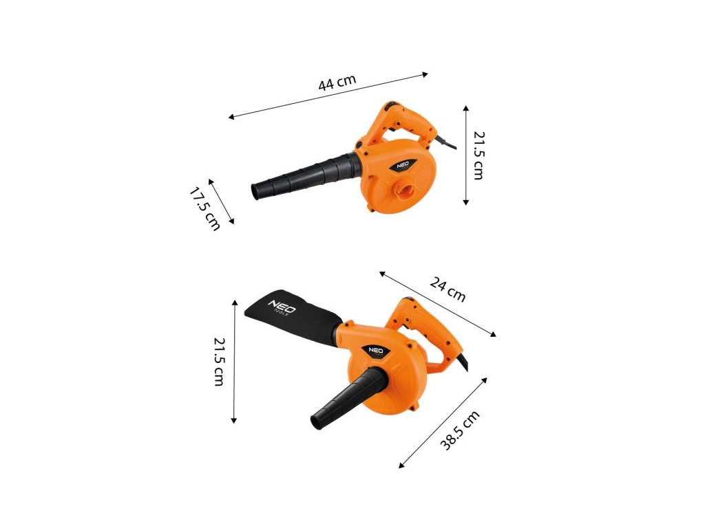 NEO TOOLS 04-625 je kompaktní 600W fukar s funkcí foukání i vysávání. Díky regulaci otáček (3 000–16 000 ot./min) a maximální rychlosti vzduchu 285 km/h zvládne úklid listí, prachu i drobných nečistot doma i na zahradě.