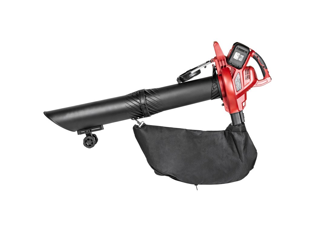- Zařízení umožňuje jednoduché přepnutí mezi funkcí foukání a vysávání. V režimu vysavače je navíc vybaveno funkcí drcení v poměru 9:1, která výrazně snižuje objem nasbíraného materiálu a prodlužuje výdrž pytle o objemu 35 litrů.