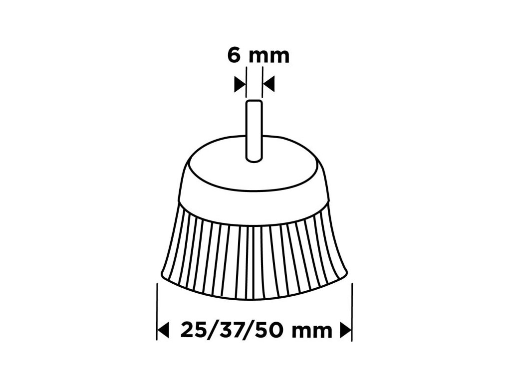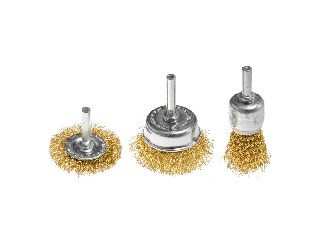 Drátěné kartáče, krimpovaný drát, mosazný, 25, 37, 50 mm, 3 ks, dřík 6 mm