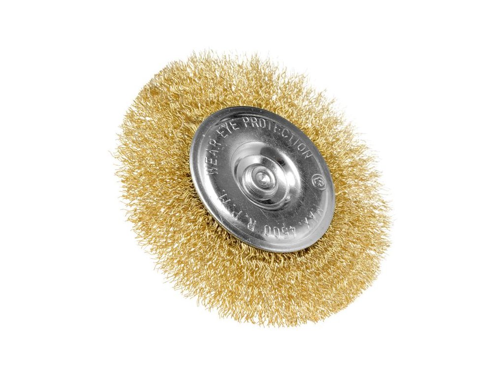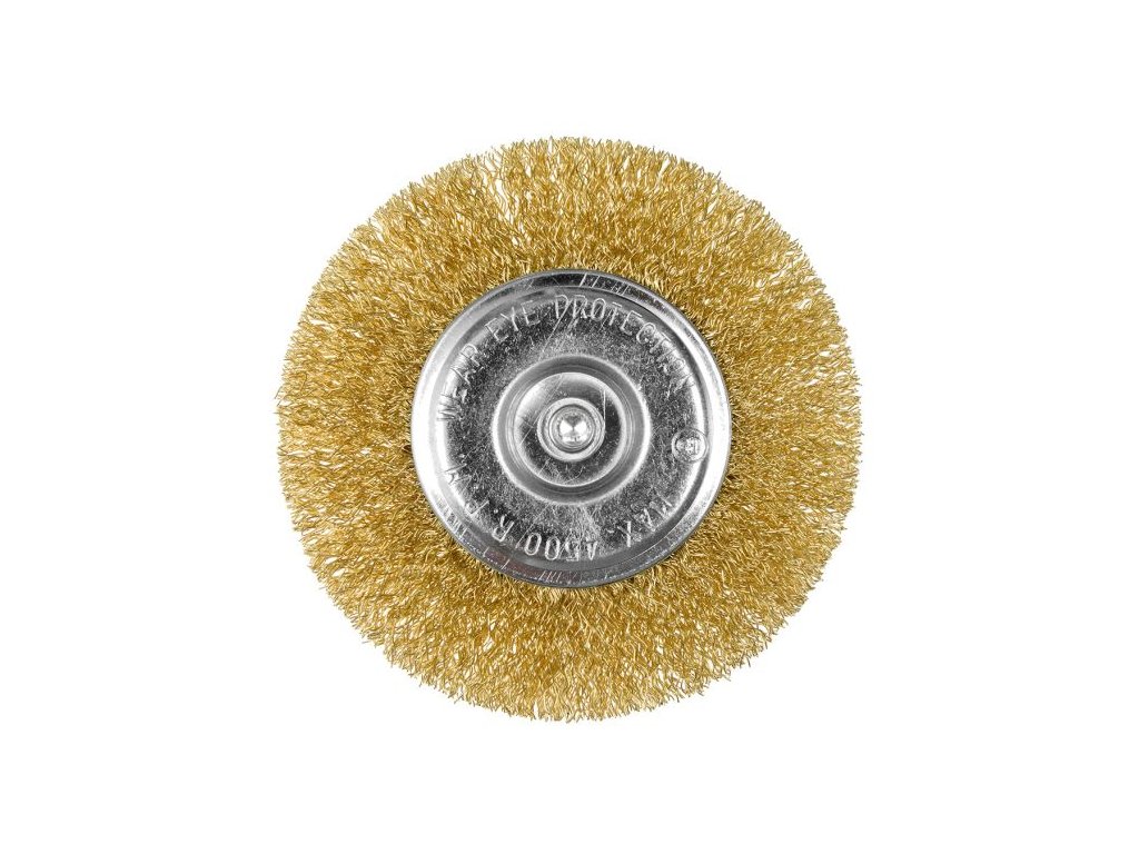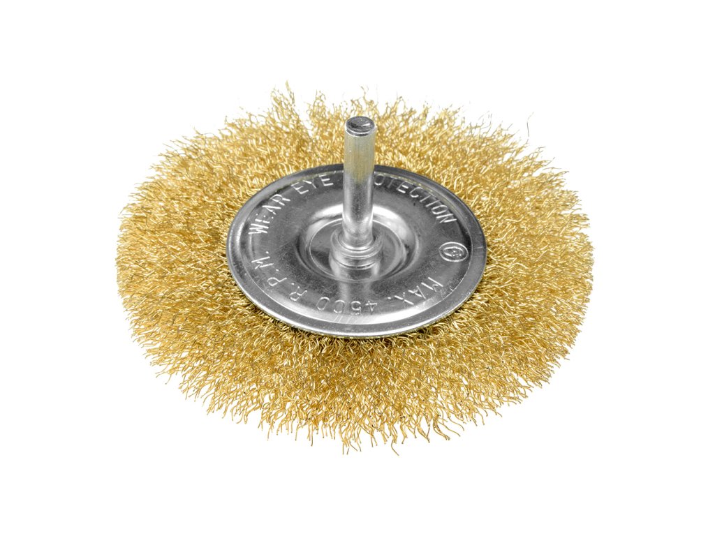 Drátěný kartáč 100 mm, krimpovaný drát, mosazný, se stopkou 6 mm
