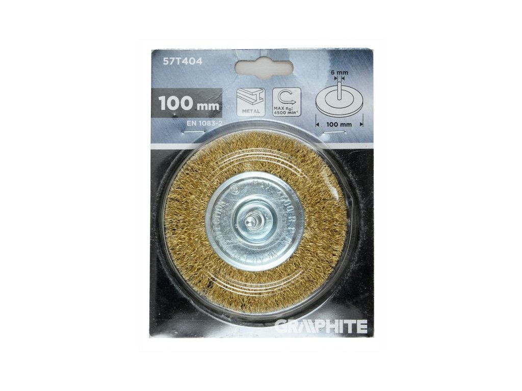 Kartáč má průměr 100 mm a je vybaven stopkou o průměru 6 mm, díky které jej lze snadno upnout do běžné vrtačky nebo akumulátorového šroubováku. Maximální povolené otáčky jsou 4 500 ot/min.