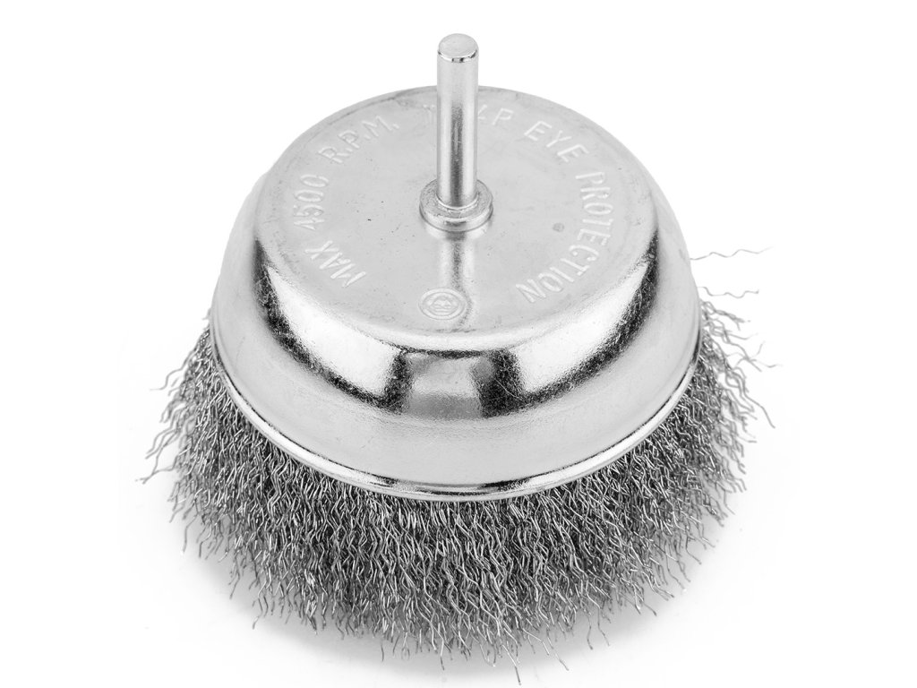 Drátěný kartáč 100 mm, krimpovaný drát, ocelový, se stopkou 6 mm