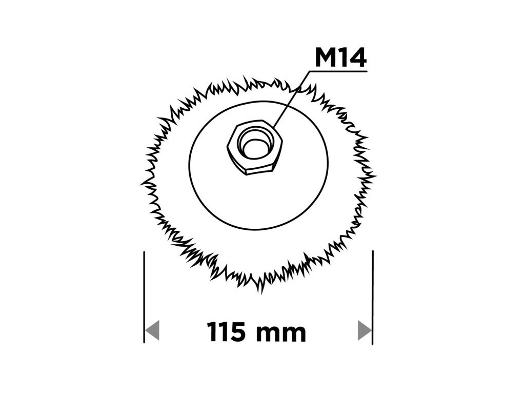 Kartáč má průměr 115 mm a je konstruován pro vysoké otáčky – maximálně 12 500 ot/min. Díky své robustní konstrukci a použitým materiálům je vhodný pro profesionální i hobby použití.