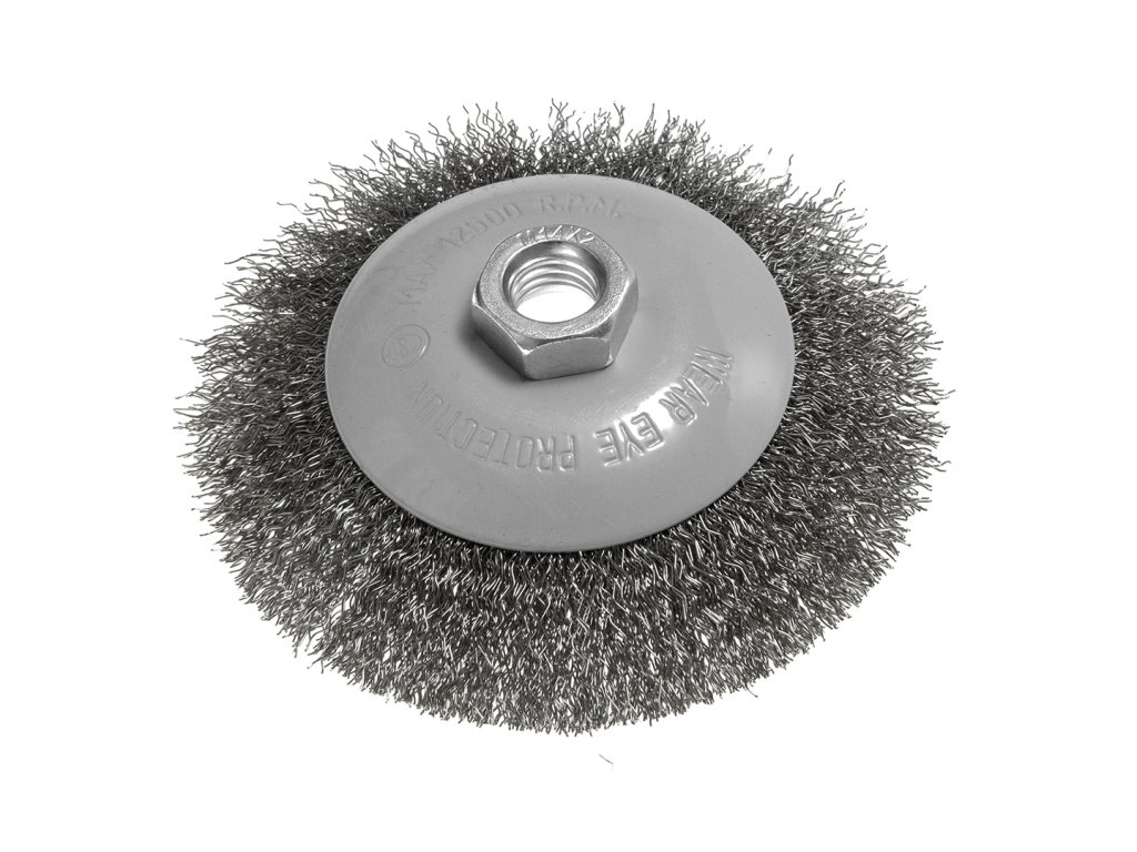 Drátěný kartáč 115 mm, krimpovaný drát, ocel, M14
