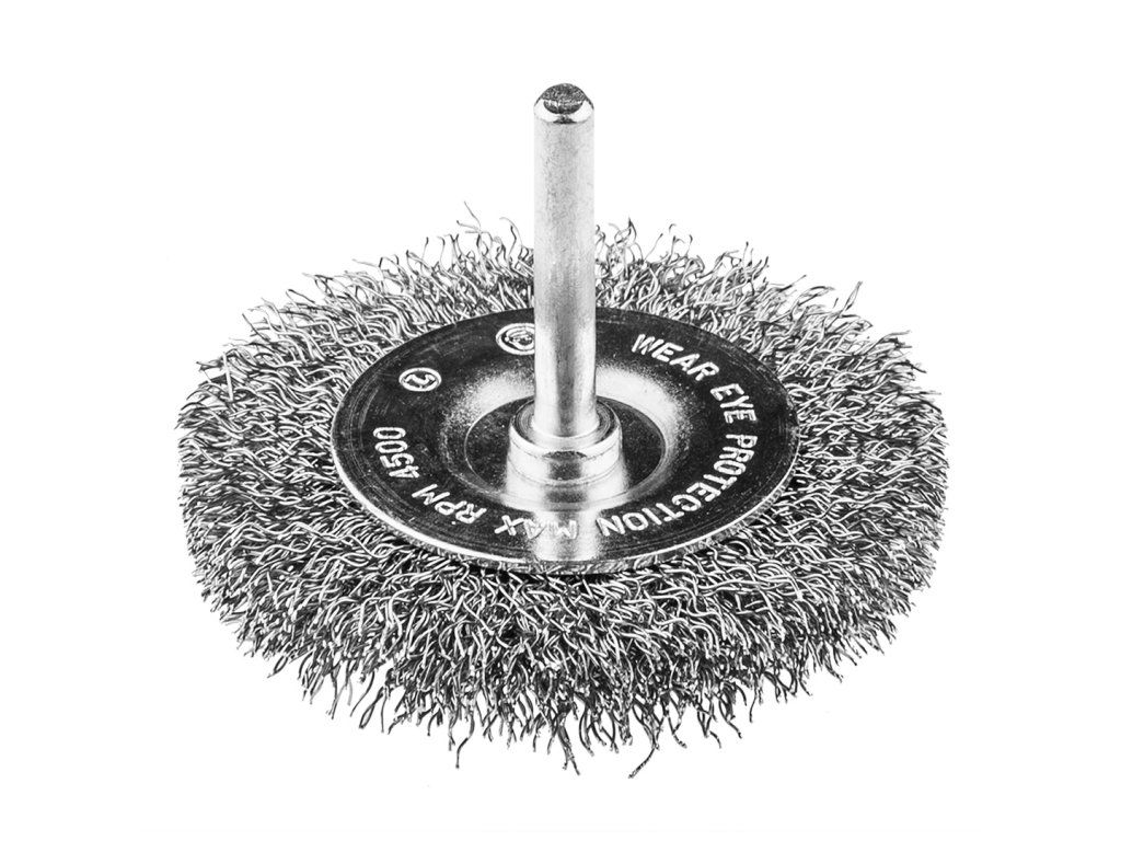 Drátěný kartáč 50 mm, krimpovaný drát, nerezová ocel, se stopkou 6 mm