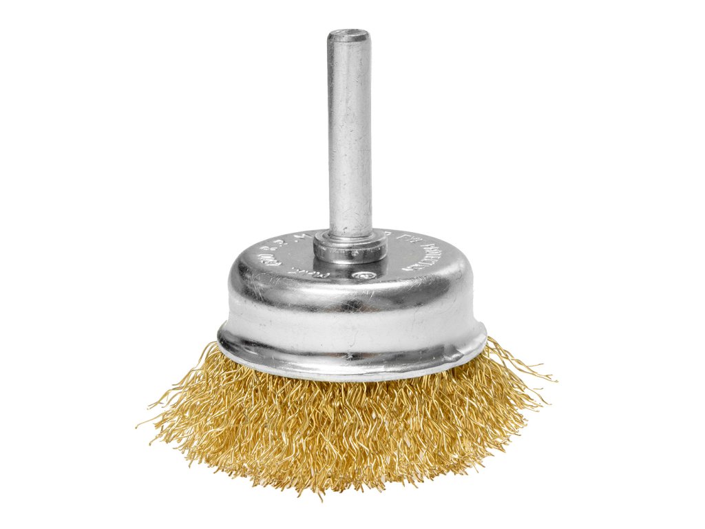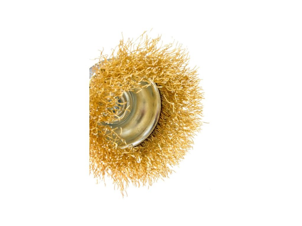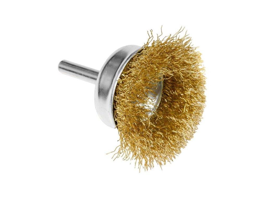 Drátěný kartáč 50 mm, krimpovaný drát, mosazný, s dříkem 6 mm