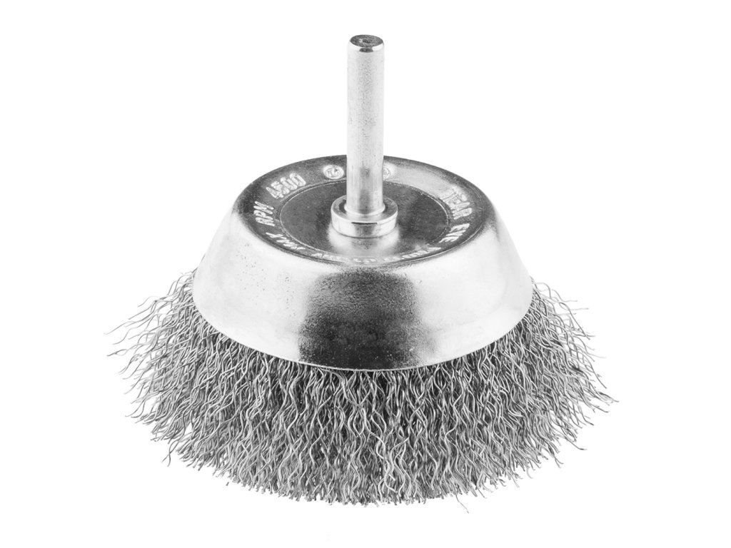 Drátěný kartáč 70 mm, krimpovaný drát, INOX, se stopkou 6 mm