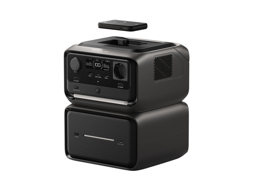 EcoFlow RIVER 3 Max Plus Wireless – přenosná bateriová stanice s přídavnou baterií a magnetickou powerbankou