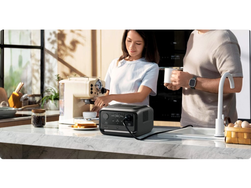EcoFlow RIVER 3 Plus Wireless je přenosná bateriová stanice, která spojuje vysokou efektivitu, tichý provoz a mimořádnou univerzálnost. Její výstupní výkon dosahuje 600 W, v režimu X-Boost až 1200 W, což z ní dělá ideální zdroj energie i pro náročnější spotřebiče, topná tělesa nebo menší elektromotory.